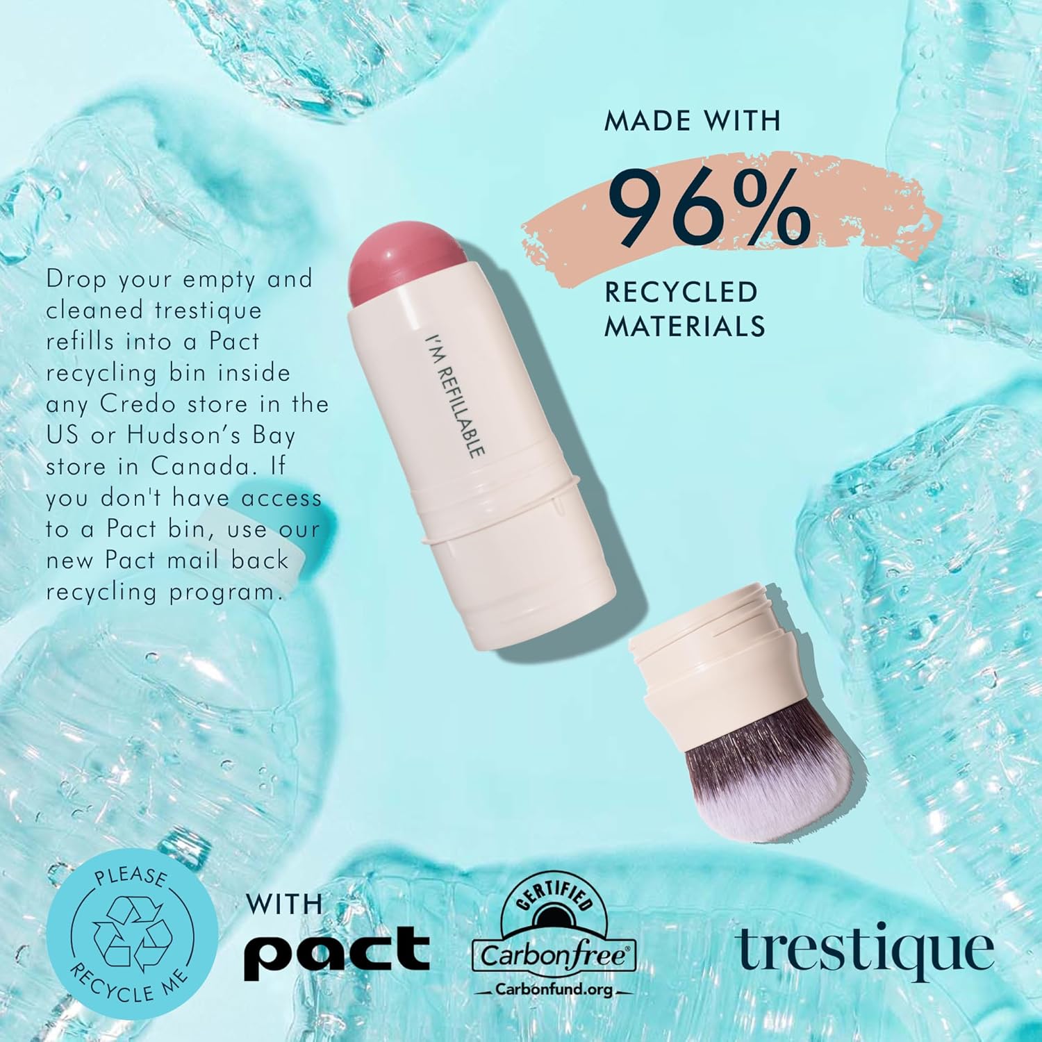 Trestique Blush Stick, Vegan Blush Stick With Built-In Blush Brush, Pink Blush Makeup For Women, Rose Blush Makeup, 2-In-1 Creamy Blush Makeup