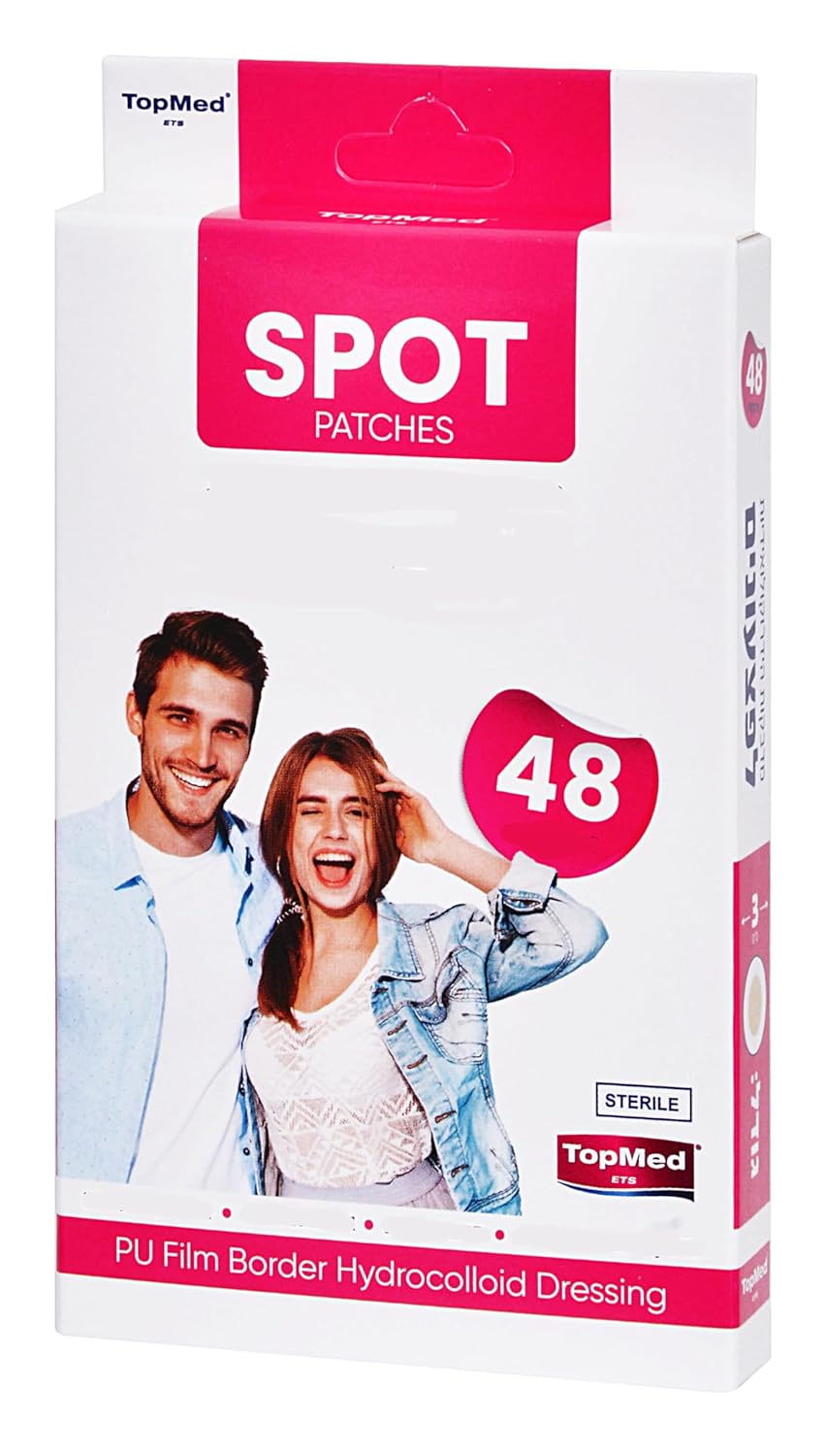 TOPMED Spot Patches PU film Border Hydrocolloid Patch for Covering Zits Acne Pimple Spot Stickers for Face 48 Count