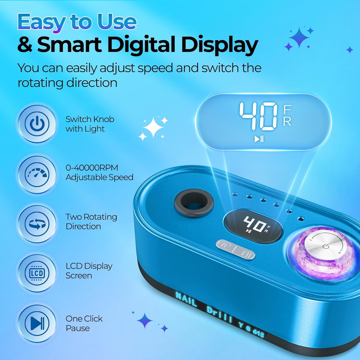 - More Powerful and Stable Electric Nail Drill: The GOLEEXU electric nail file is perfect for various nail care tasks. The speed can be as high as 40,000 RPM, you can adjust the speed with precision by simply rotating it easily. From pre-care to removal and shaping, it handles nail extensions, gel polish, tips and dead skin