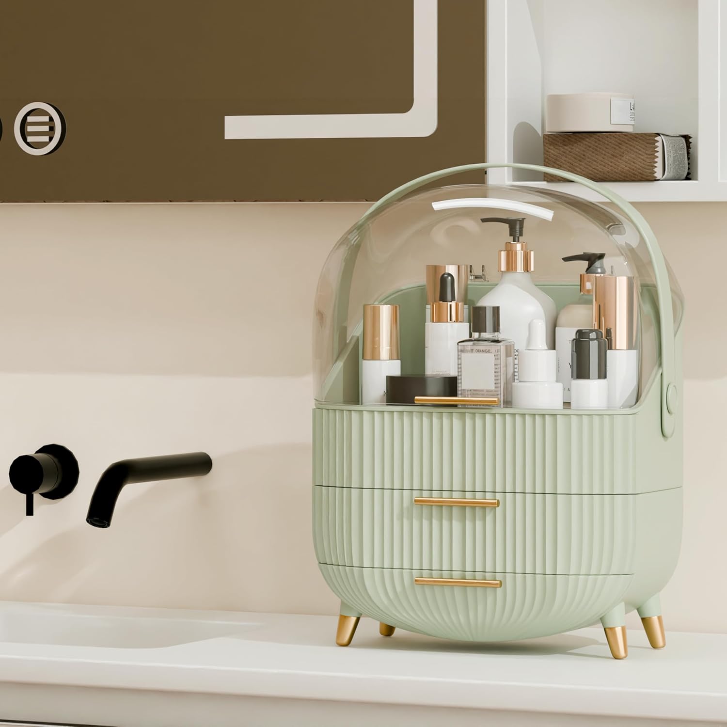 Makeup Organizers and Storage, Make up Organizer for Vanity Cosmetics Skincare Organizers With Lid and Drawers Display Cases for Countertop(Light Green)