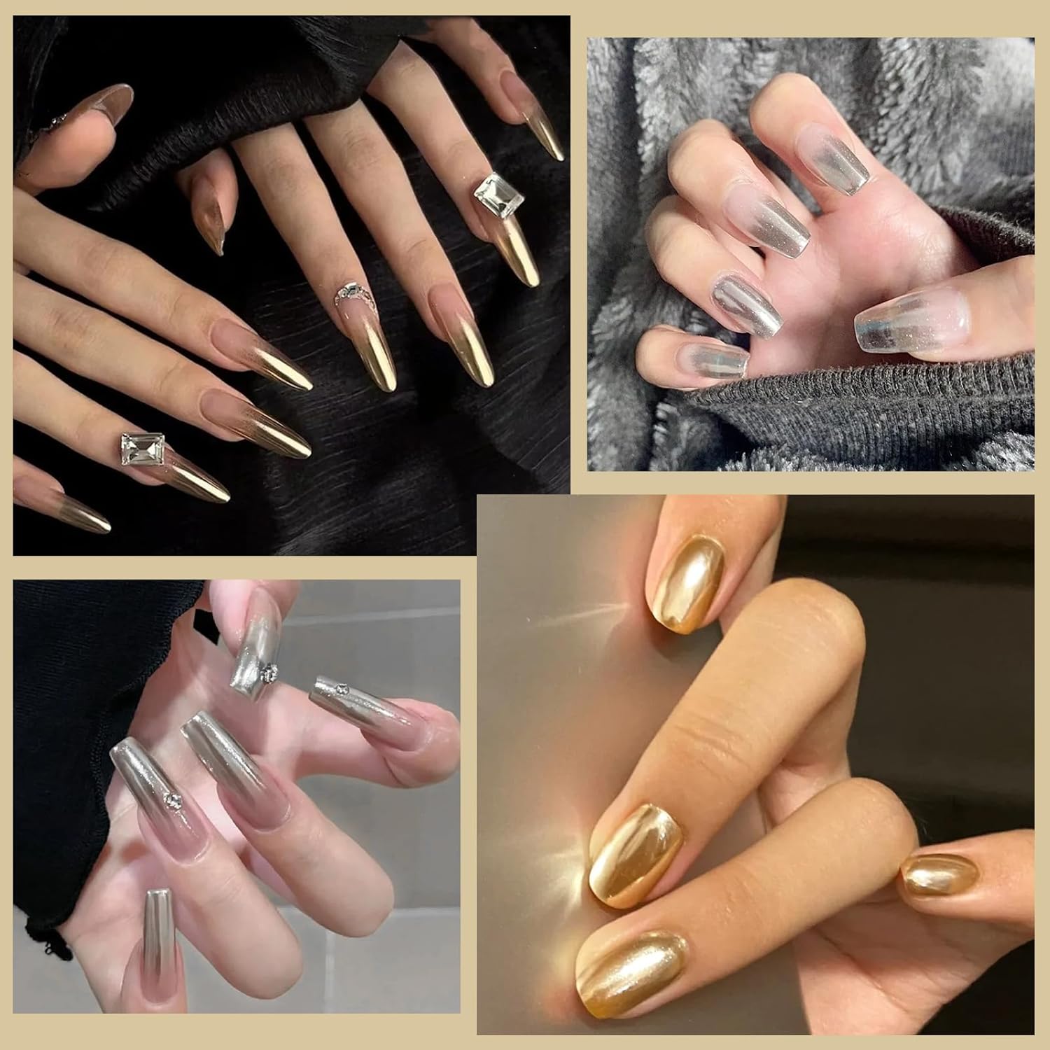 - 【Nail Art Pearl Chrome Powder】:This package contain 2 PCS pearl nail mirror pigment powders. It needs to be used with gel nail polish and no wipe top coat. 1 PCS for gold chrome powder, 1 PCS for silver Chrome nail powder. They can make many different design for your gel nail polish.
