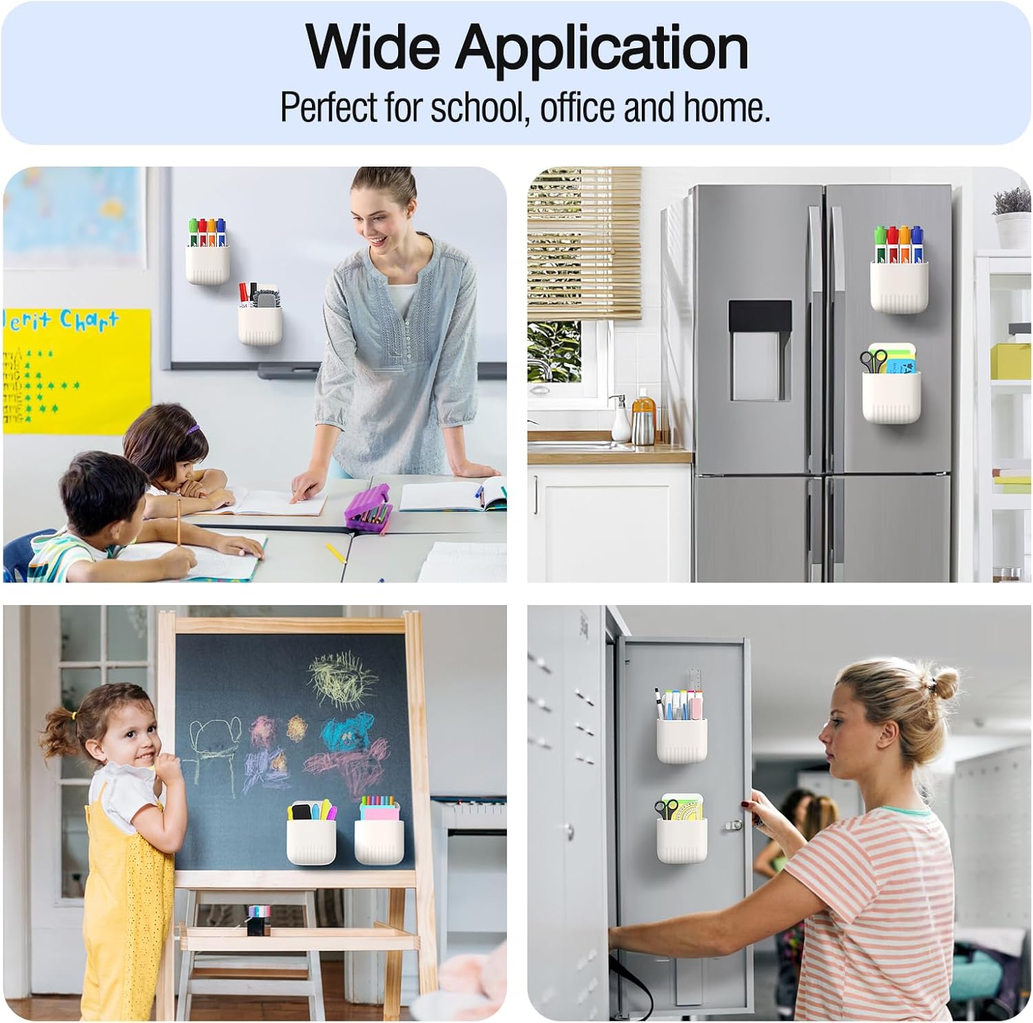 - 【Magnetic Storage Holder】Measuring 6.3x3.7x3.7in/ 16x9.5x9.5cm, the dry erase marker holder has a appropriate size and can organize various office or school supplies, such as markers, pencils, pens, whiteboard erasers, sticky notes, etc. Keep office essentials organized and say goodbye to messy storage!