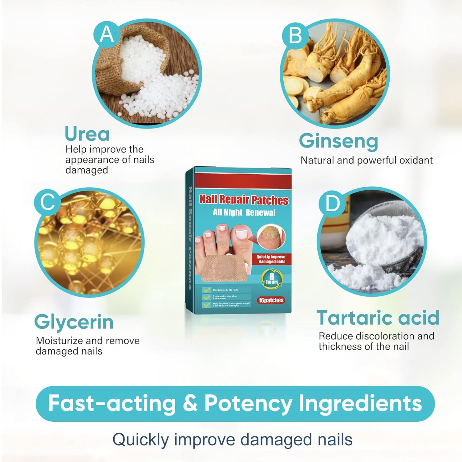 Toenail Repair Treatment, 16Pcs Nail Repair Treatment Extra Strength, Restores Health Appearance of Discolored or Damaged Nails, Comfortable & Convenient