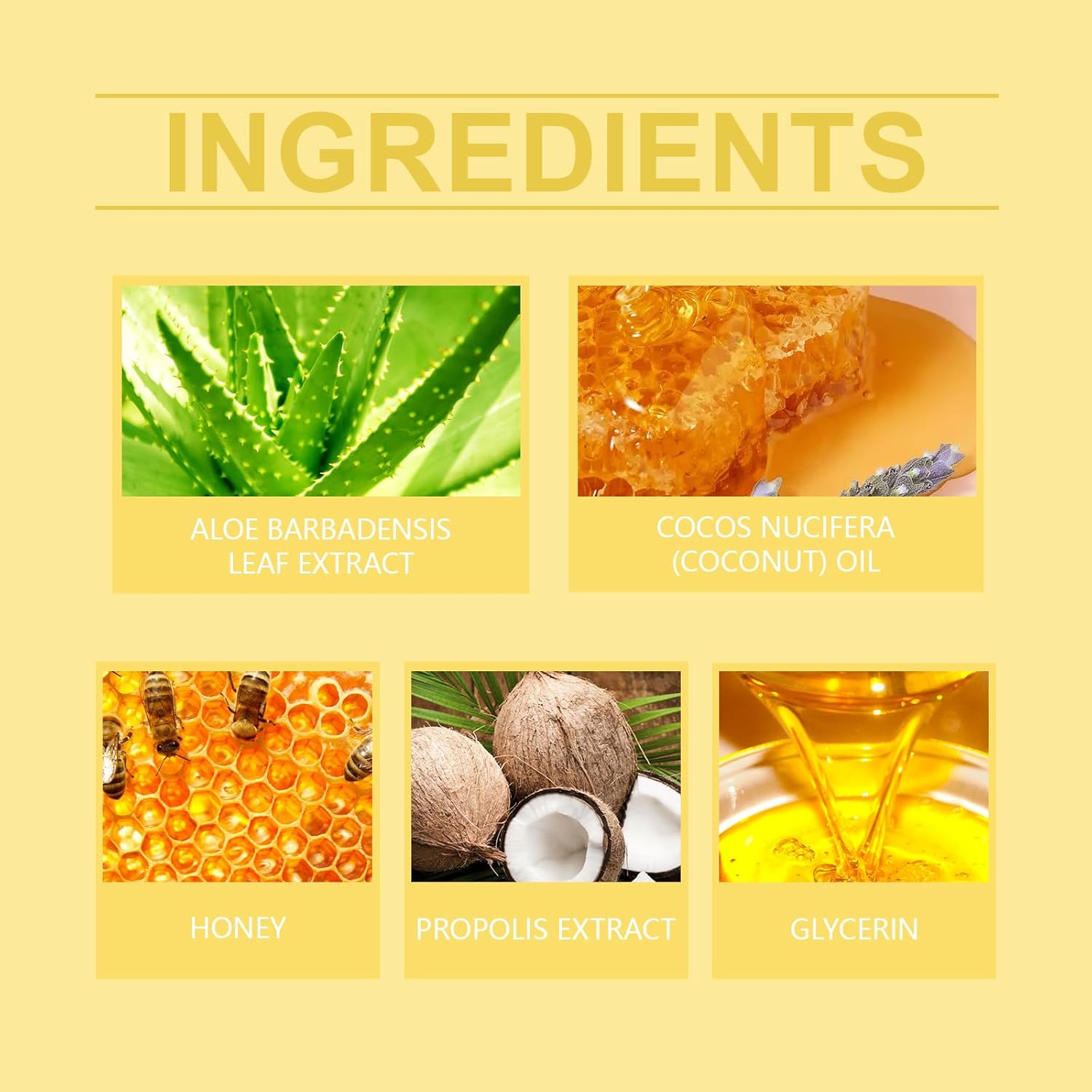 Honey Lip Balm, Propolis Long Lasting Hydrating Lip Butter & Mask, Overnight Nourishing Care, Gentle Exfoliation, Non-sticky Fresh Texture