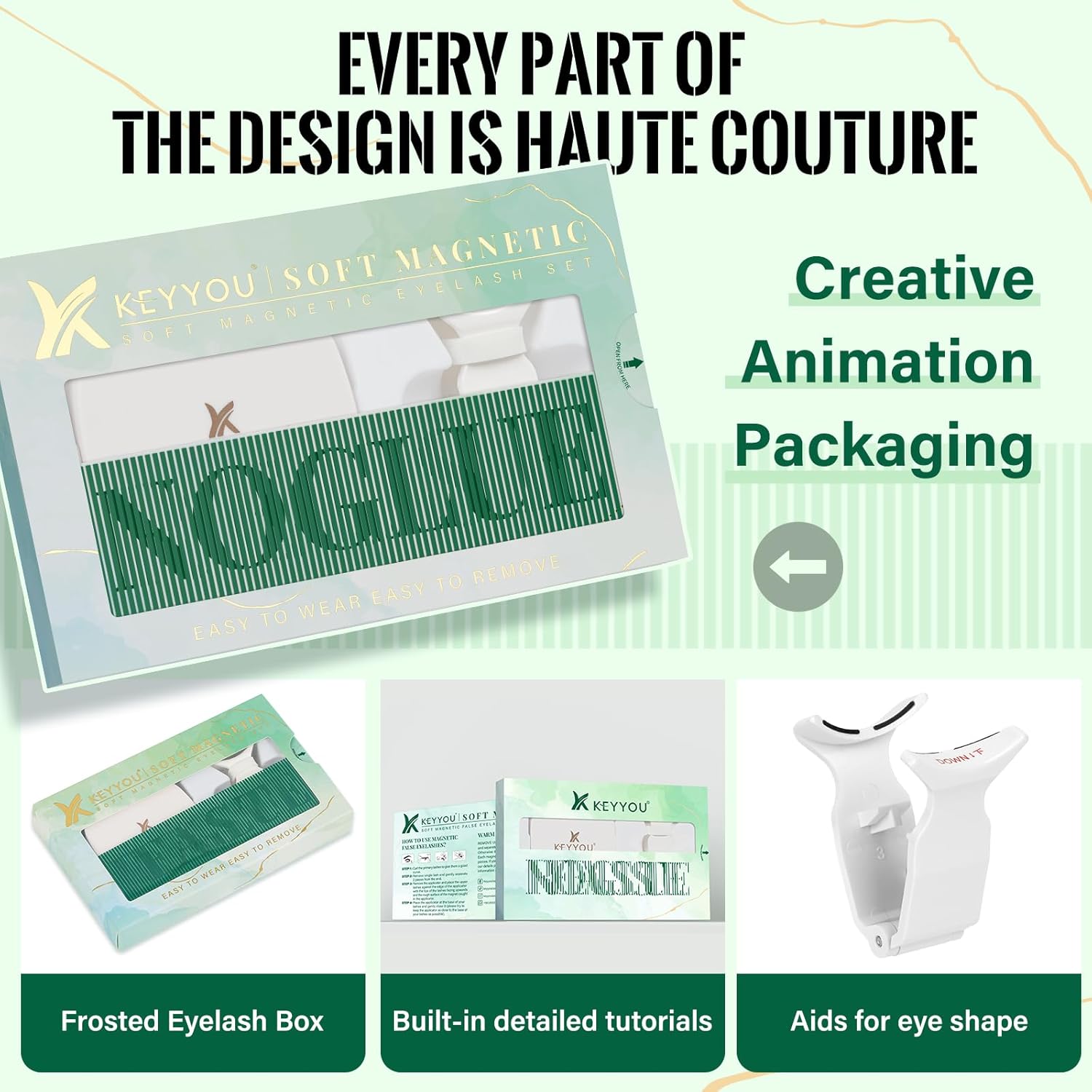 KEYYOU Magnetic Eyelashes Kit: No Glue Reusable Eyelashes, Single Pair, Radiant, Black, Faux Mink, Soft, Lightweight, Natural Appearance