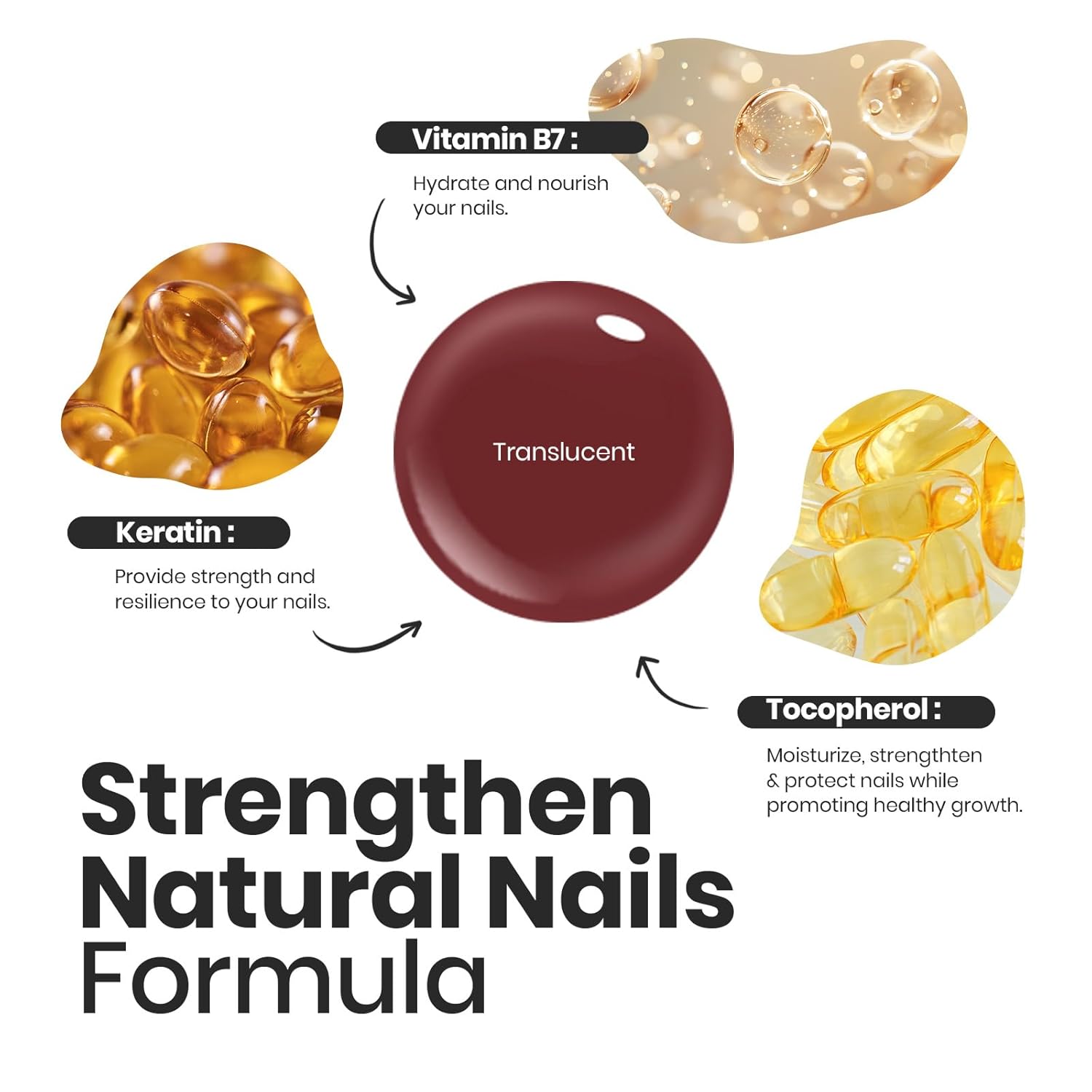 - Armor ingredients: Different from ordinary nail polish, this sheer jelly nail polish set contains keratin, vitamin B7, tocopherol and other nail care ingredients, which increase the thickness and hardness of nails and speed up the recovery of nails.