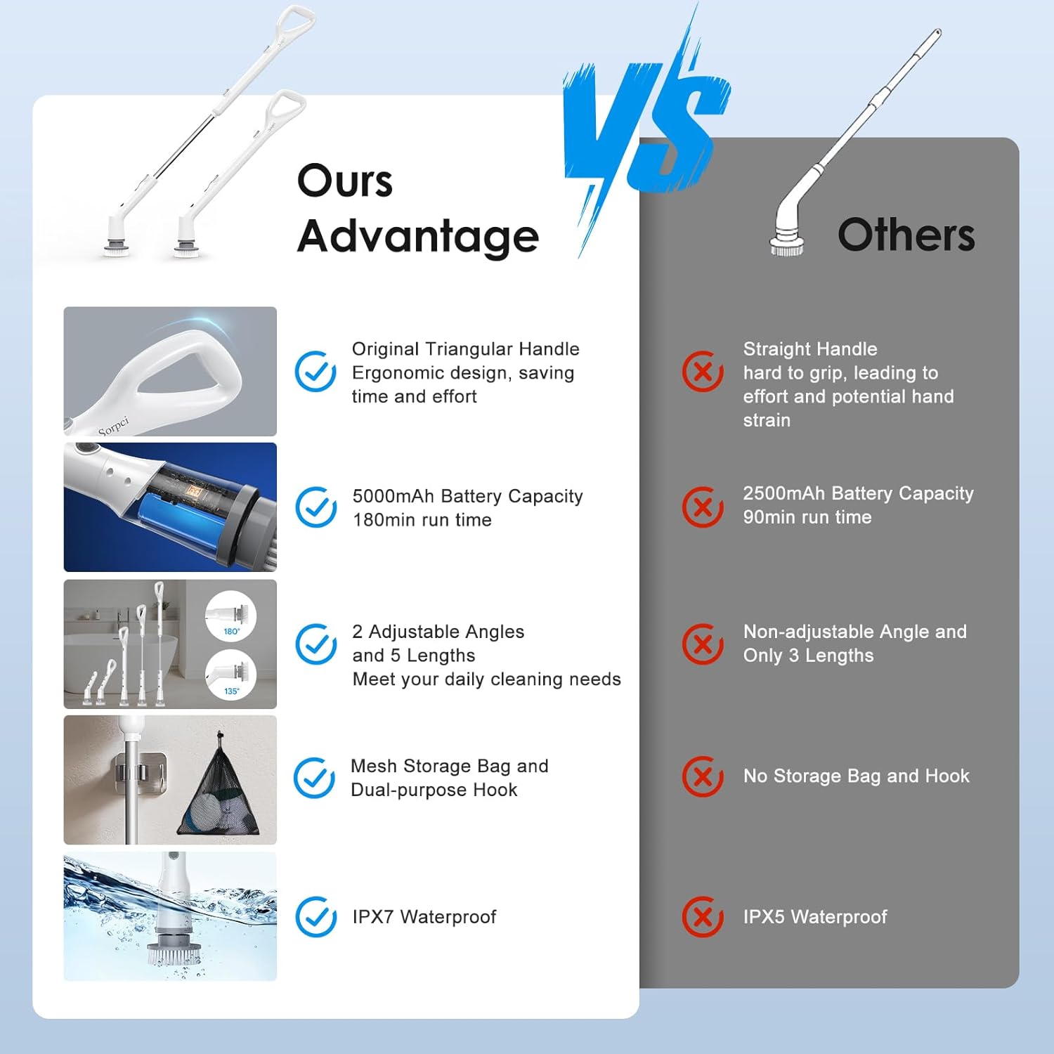 - Electric Spin Scrubber - 2025 Upgraded: This electric spin scrubber bathroom tool features an innovative triangular long handle, a powerful 5000mAh battery, and IPX7 waterproofing. Say goodbye to tedious scrubbing with this efficient shower scrubber with long handle that saves time and effort.