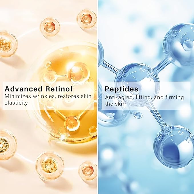- Smoother & Firmer: Retinol, known for its skin-renewing properties, helps reduce the appearance of fine lines and wrinkles, while peptides support collagen production for firmer, more youthful-looking skin