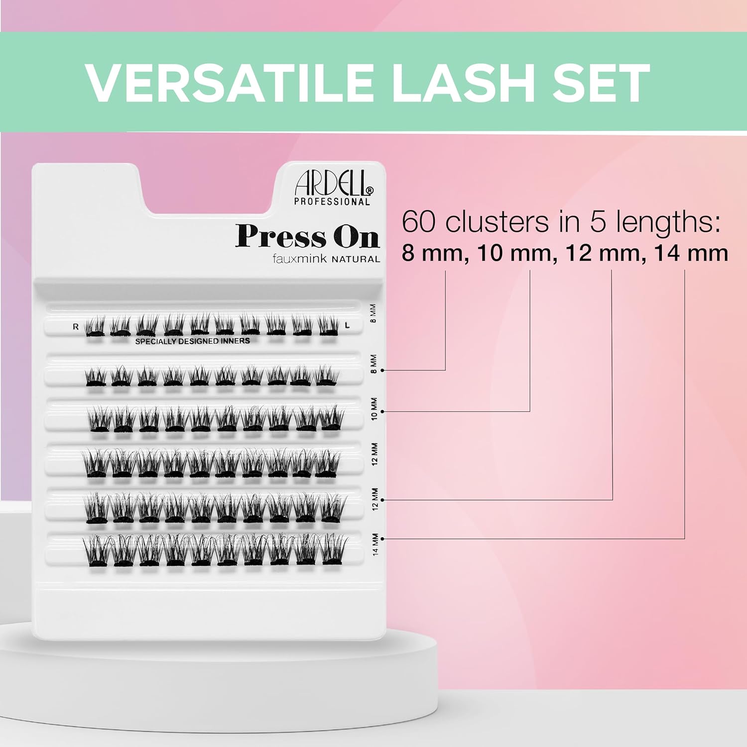 - Custom Lash Multipack: Value pack includes 60 clusters in 5 lengths (8 mm-14 mm) for versatile at-home sets. Special Inner Clusters are angled for a seamless fit in the inner corner, ensuring a smooth finish.