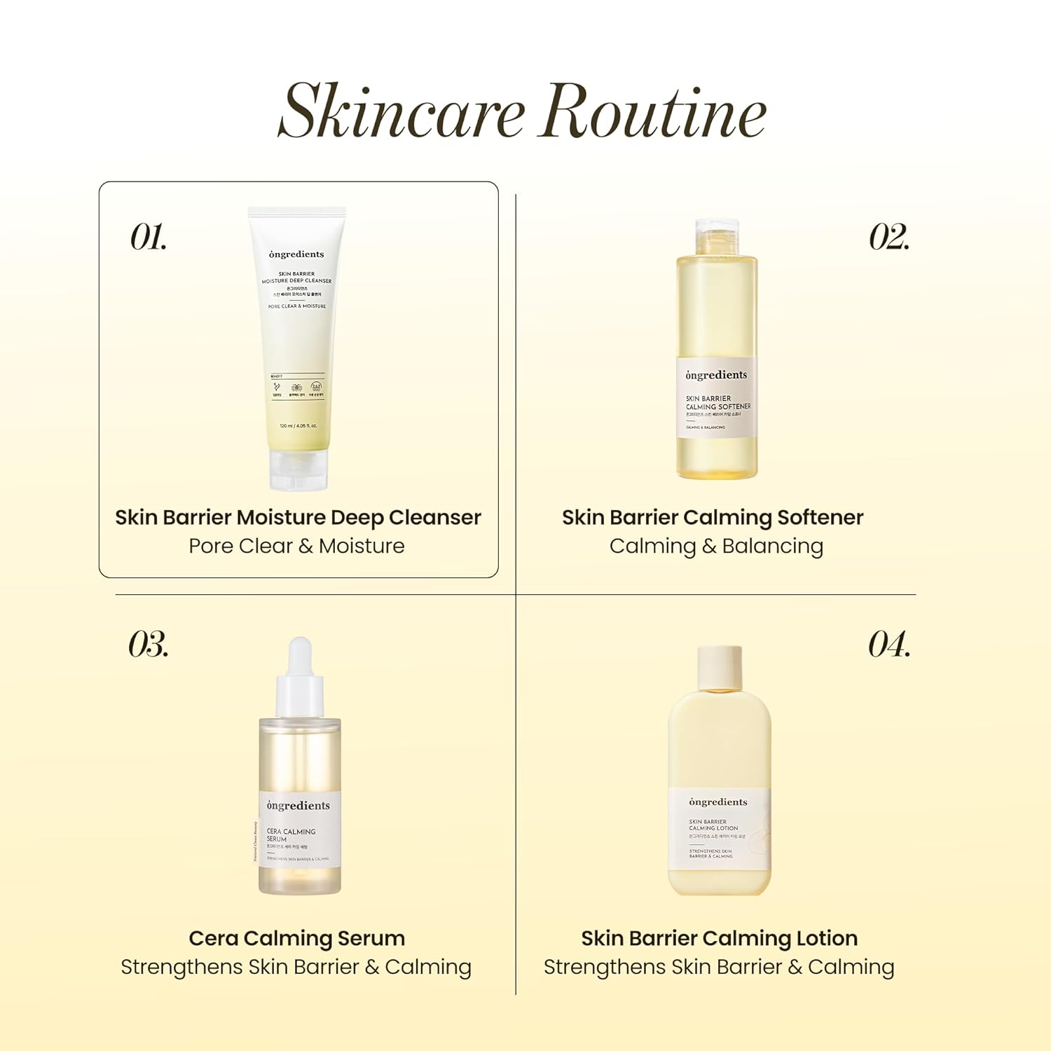 ONGREDIENTS Skin Barrier Moisture Deep Cleanser | Daily Face Wash for All Types | Centella, Peptide, AHA, LHA, Hydrating, Soothing, Pore Tightening | Vegan, Korean Skin Care 4.06 fl Oz