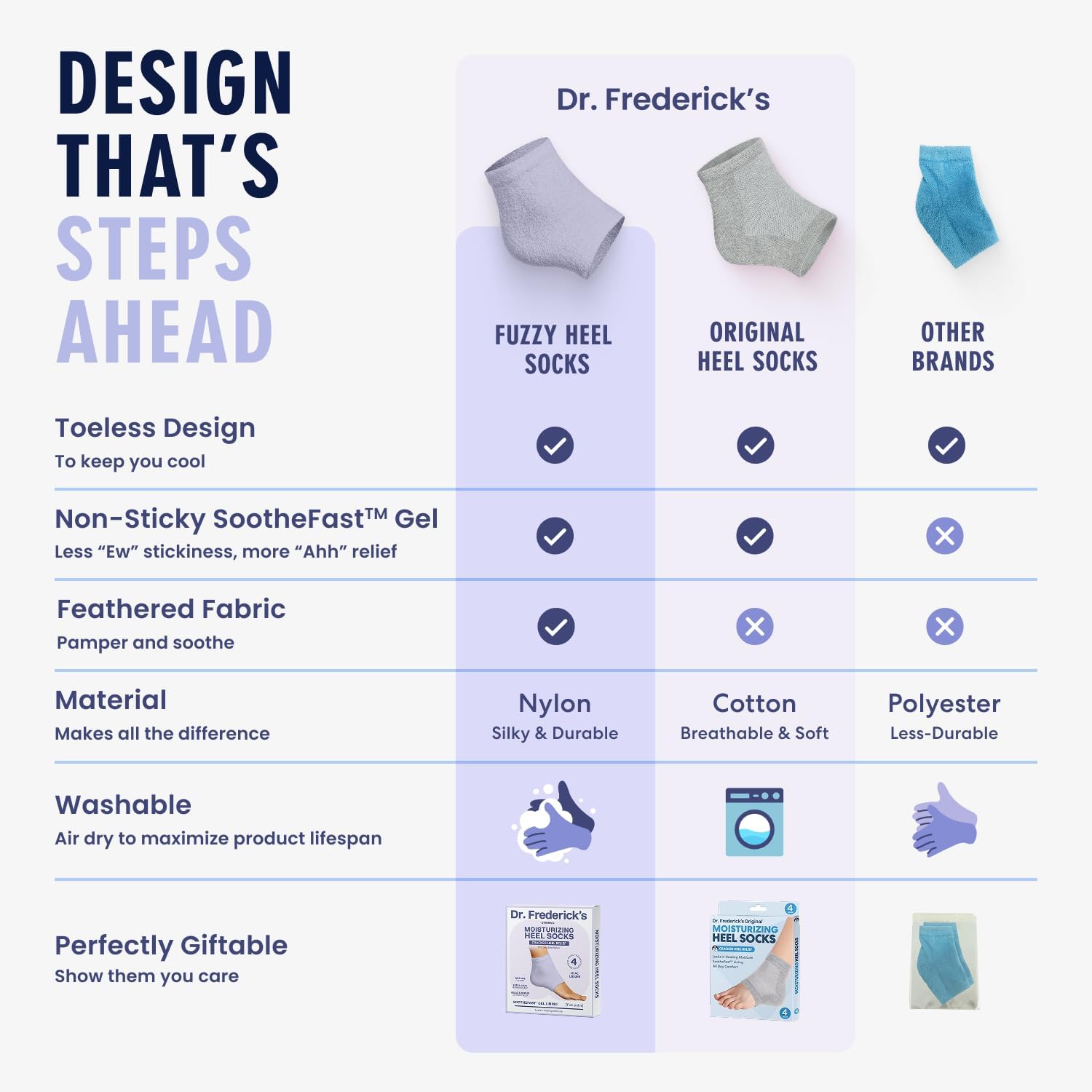 - Visible Results Fast: Dr. Frederick’s Original Fuzzy Heel Socks are expertly developed to transform dry, rough feet into soft, smooth soles. Most users see a difference after just one night, with best results achieved after one week of consistent use.
