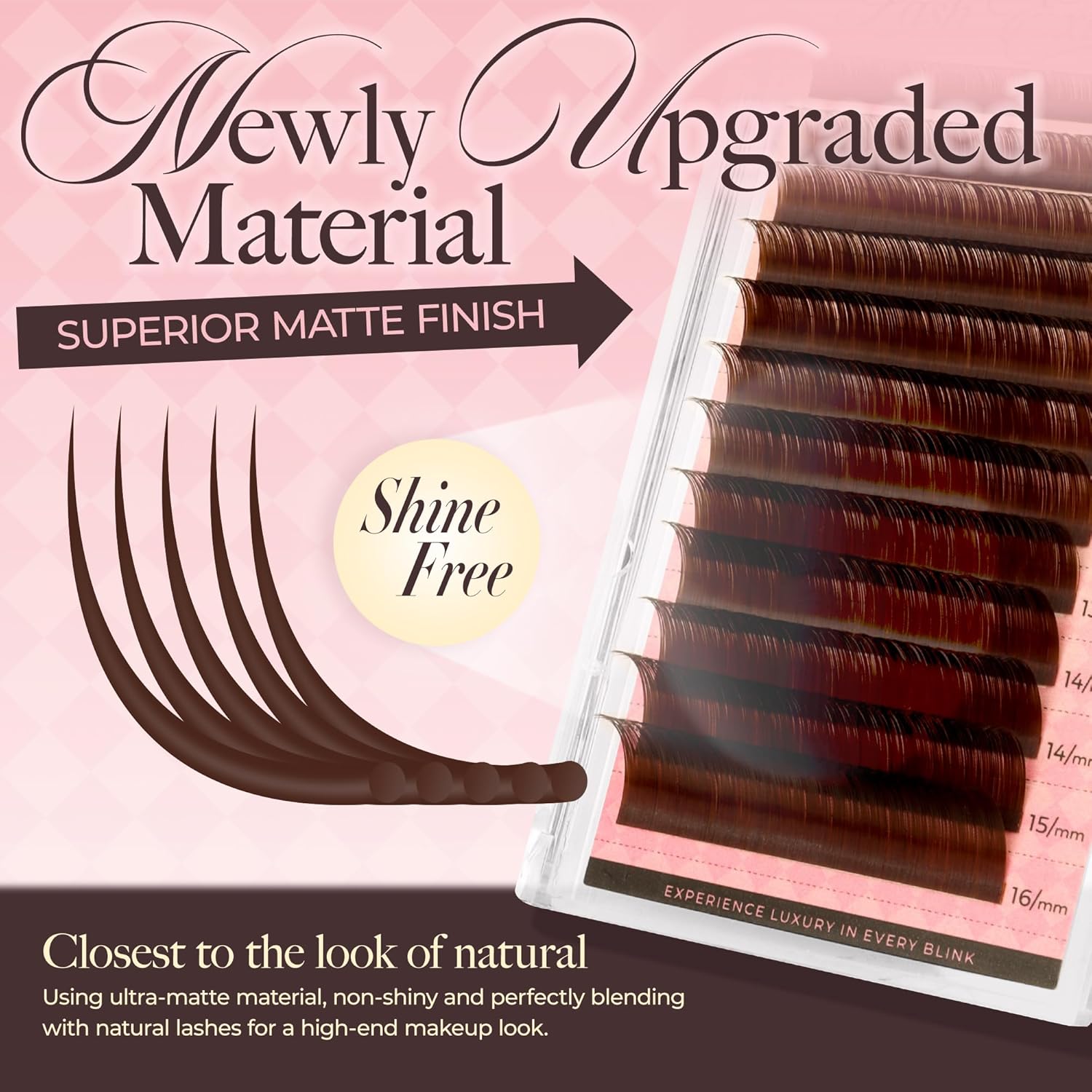 LASHVIEW Coffee Brown Volume Lash Extensions 0.03-0.20 J/B/L/C/CC/D Curl 8-16mm Mixed & Single Length Tray, Soft Matte Dark Professional Eyelashes Extension(0.07 D 8-16mm)