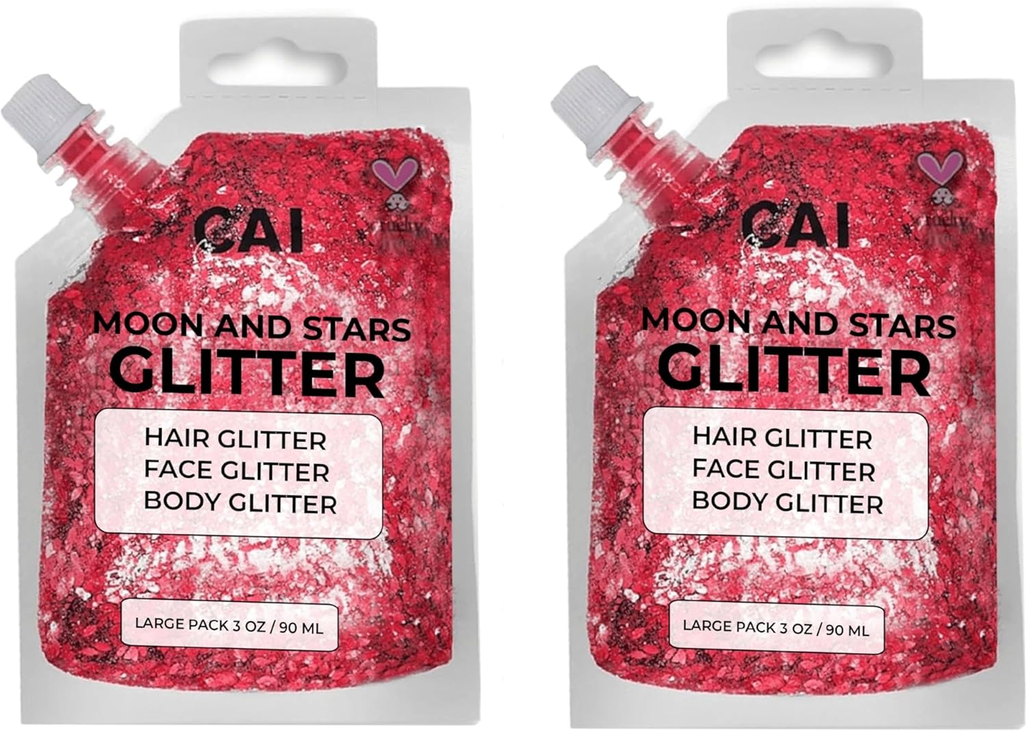 Face, Body & Hair Glitter Gel – Halloween Glitter for Kids and Women – 3 Oz Cosmetic-Grade Gel w/Moon & Stars for Festivals & Halloween Party, Easy Apply & Wash Off - Red 2Pack