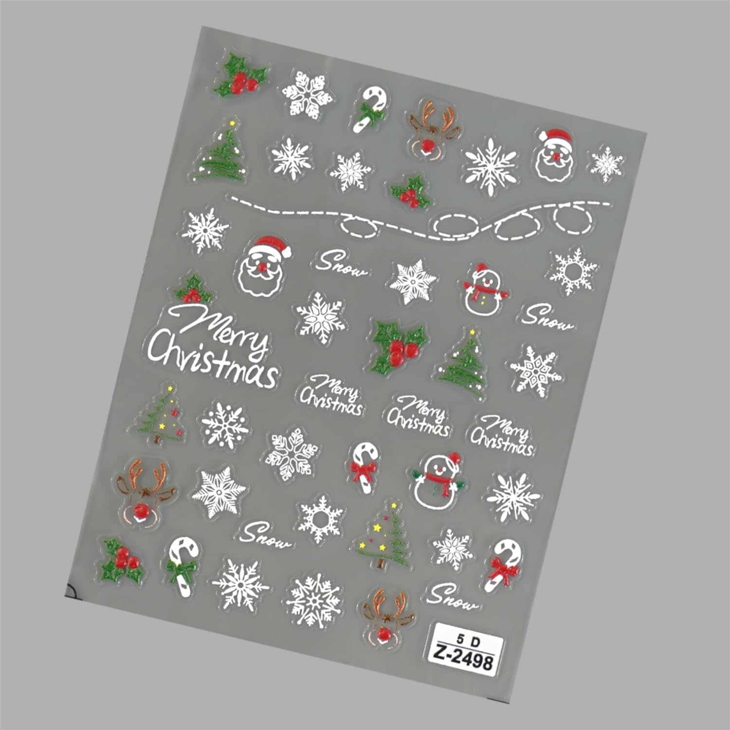- 【Christmas Nail Art Supplies】5D embossed self-adhesive nail decals for nail art with charming winter and Christmas motifs such as Santa Claus, snowman, and snowflake.These designs capture the essence of the season, making them ideal for women and girls to embrace the winter charm.