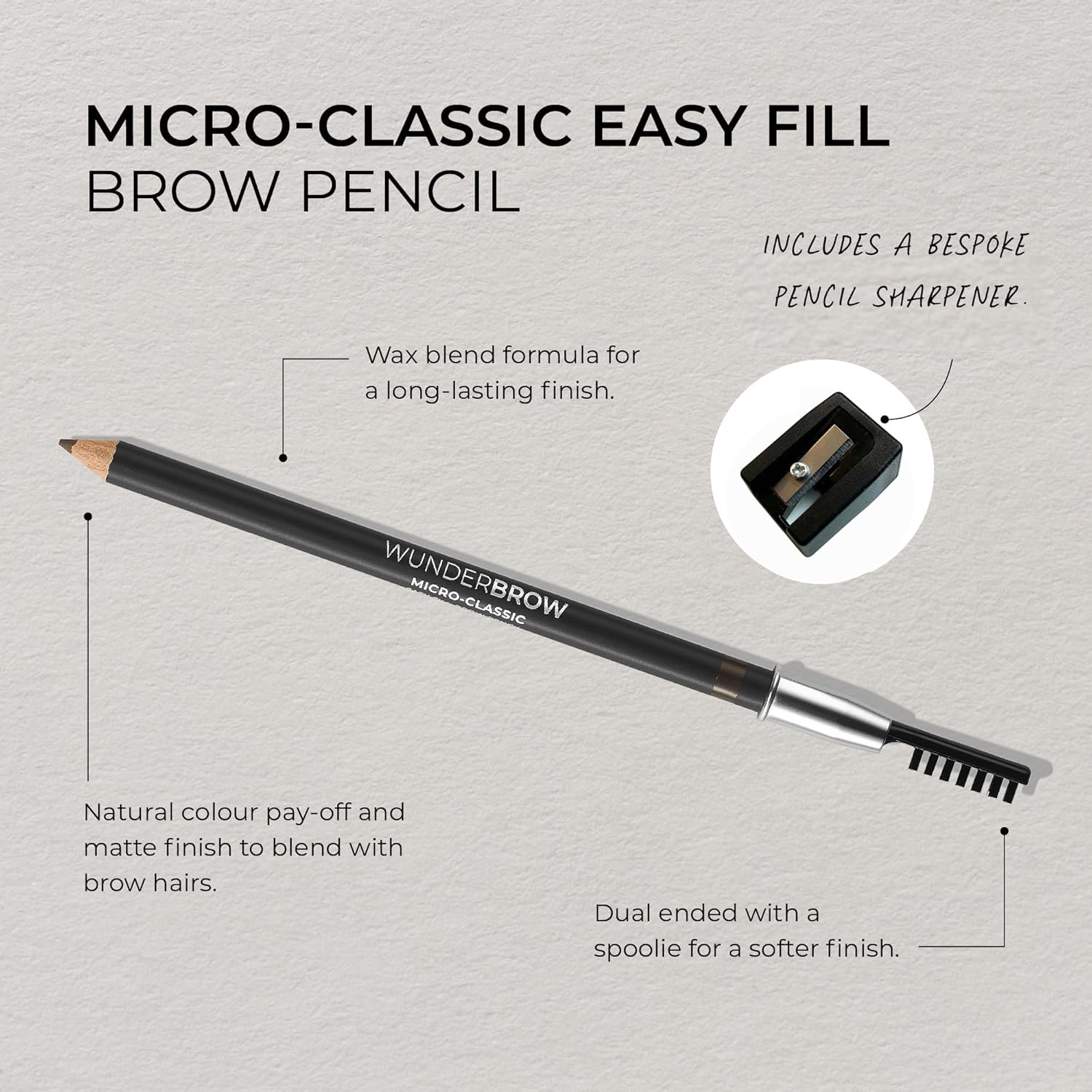 Wunderbrow Micro-Classic Brow Pencil, 2.5mm tip for precision filling, Sharpener Included, Vegan and Cruelty Free (Taupe-Grey)