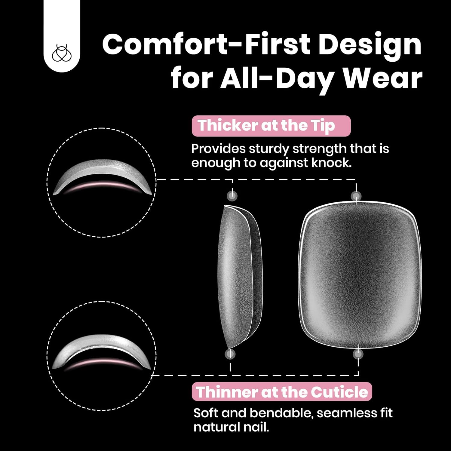 - Full Matte Press on Toe nails: The soft gel toe nail tips are constructed with a thick front edge and a thin back edge, the thickened front edge makes the nails less prone to chipping and more resistant to knocks, the thin back edge ensures a seamless fit with your natural nails, giving your toes a very natural appearance
