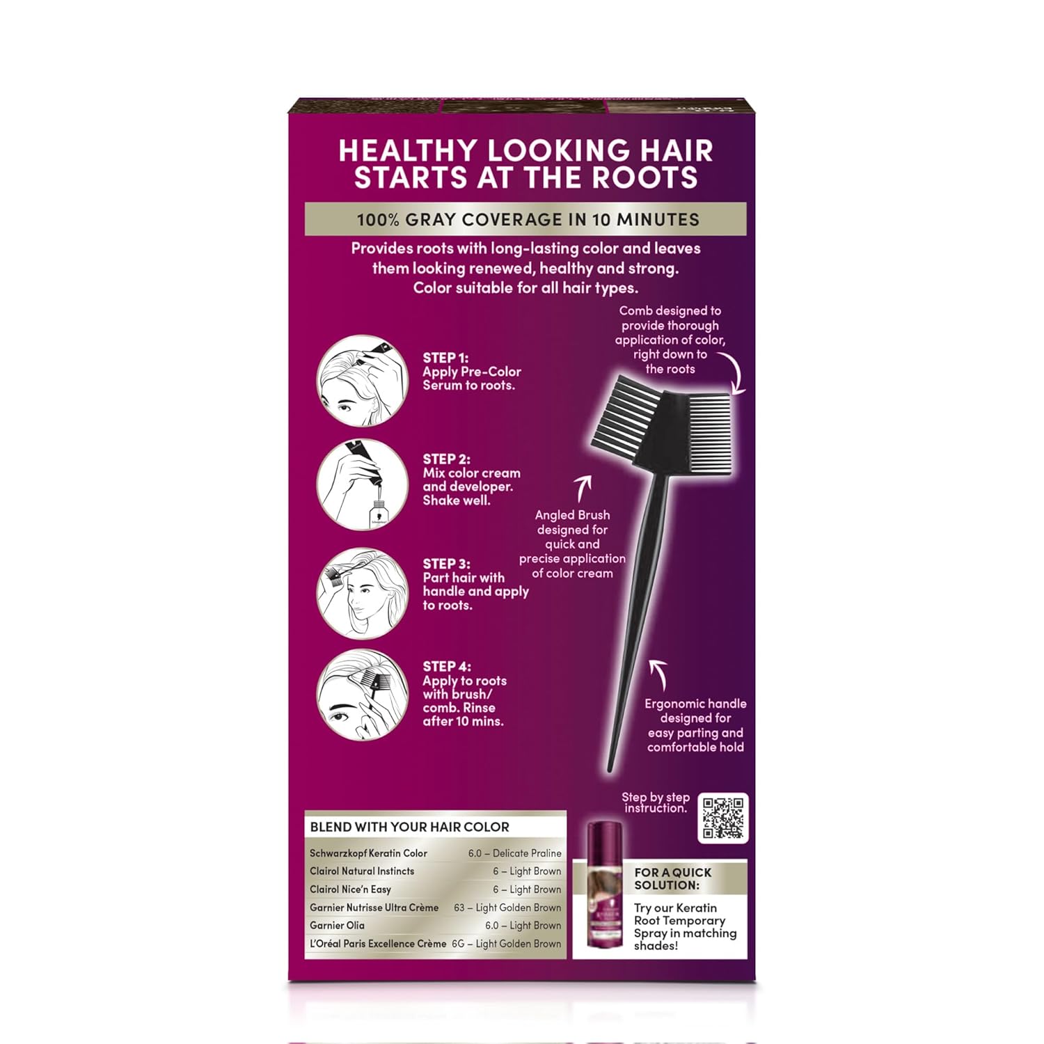 Schwarzkopf Keratin Color Root Permanent Hair Color Kit, Light Brown, 1 Application - Salon Inspired Permanent Hair Dye, for up to 80% Less Breakage vs Untreated Hair and up to 100% Gray Coverage