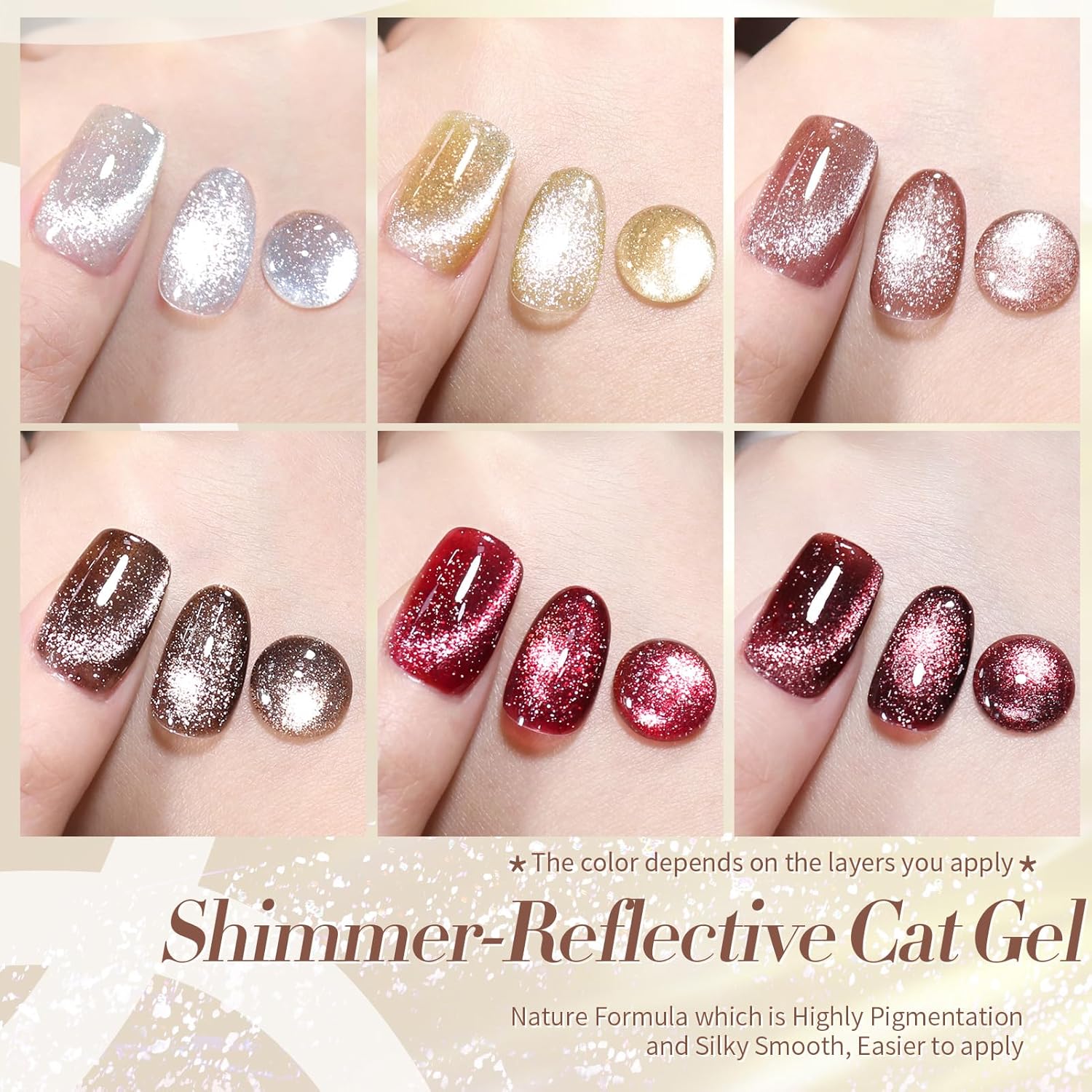 Born Pretty Cat Magnetic Eye Gel Nail Polish Reflective Glitter Gel Polish Red Silver Champagne Gold Glitter Gel Nail Polish 6PCS Set