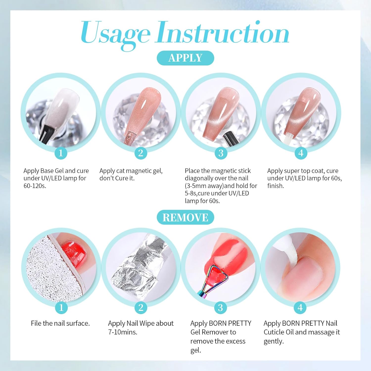 BORN PRETTY Blue Cat Magnetic Eye Gel Nail Polish, Rainbow Holographic Moonlight Glass Magnetic Gel Nail Polish 15ML