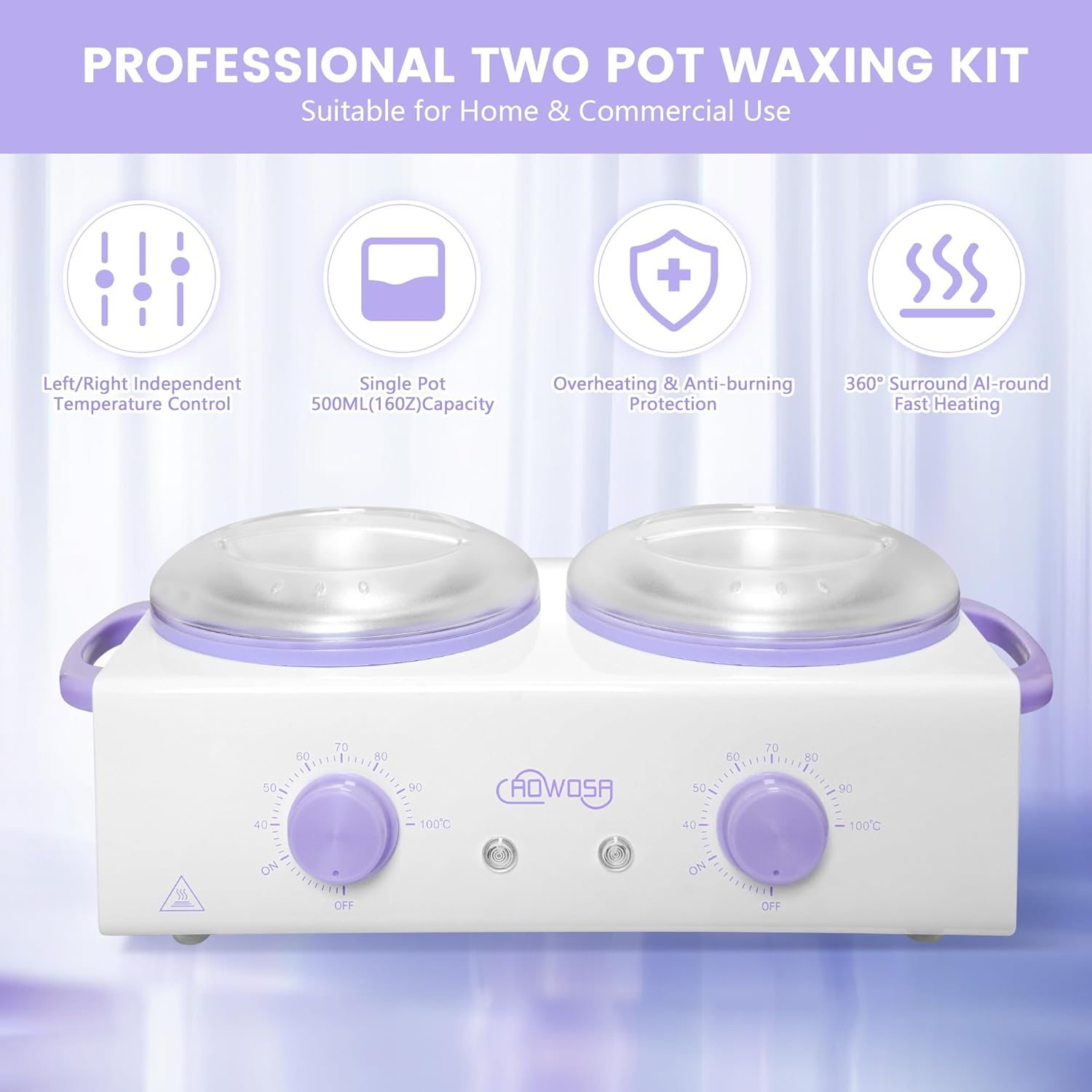 - 【Powerful Heating System】AOWOSA Double Wax Warmer combines both fast heating and overheating protection. It only takes 10-15 minutes to melt the wax in the pot. When the temperature in the pot reaches the temperature of your choice, it automatically stops heating to prevent overheating and burning. When the temperature in the pot drops, it automatically turns on the heating so that the wax in the pot is always in the state you want.