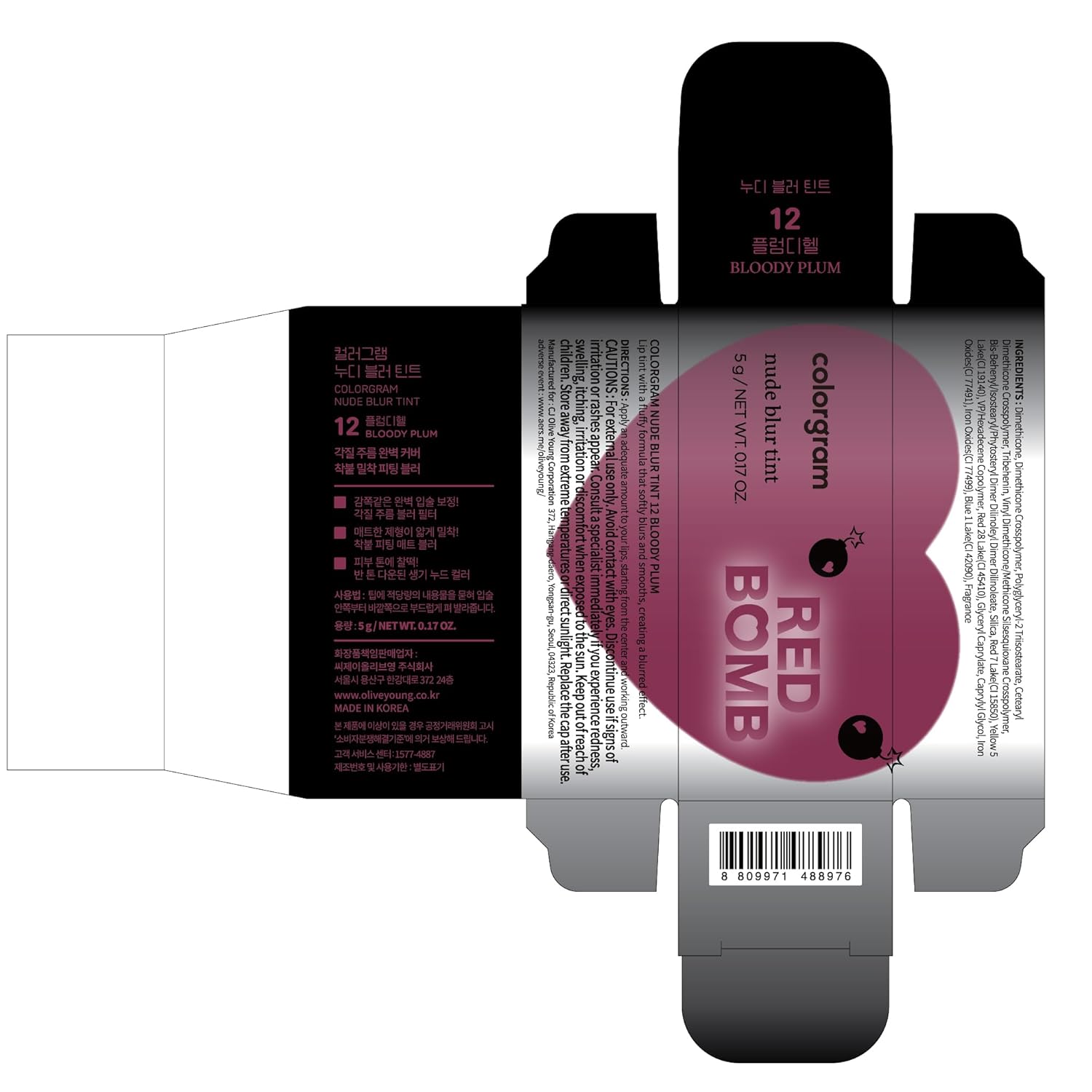 COLORGRAM NUDE BLUR TINT 12 BLOODY PLUM | Soft Velvet Matte Liquid Lipstick & Cheek Tint | Lightweight Blurring Tint for a Smooth & Airbrushed Finish | Long-Lasting & Non-Sticky Formula