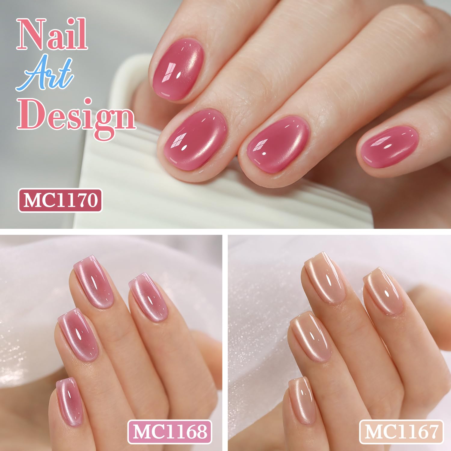 - Cat Eye Gel Nail Polish Set: Double Rhythm cat eye gel nail polish kit includes 6colors 7.5ml / 0.25 fl.oz gel nail polish. This cat eye gel nail polish set includes.Each kit comes with one magnetic tool for you to create a different cat eye style for your nails.
