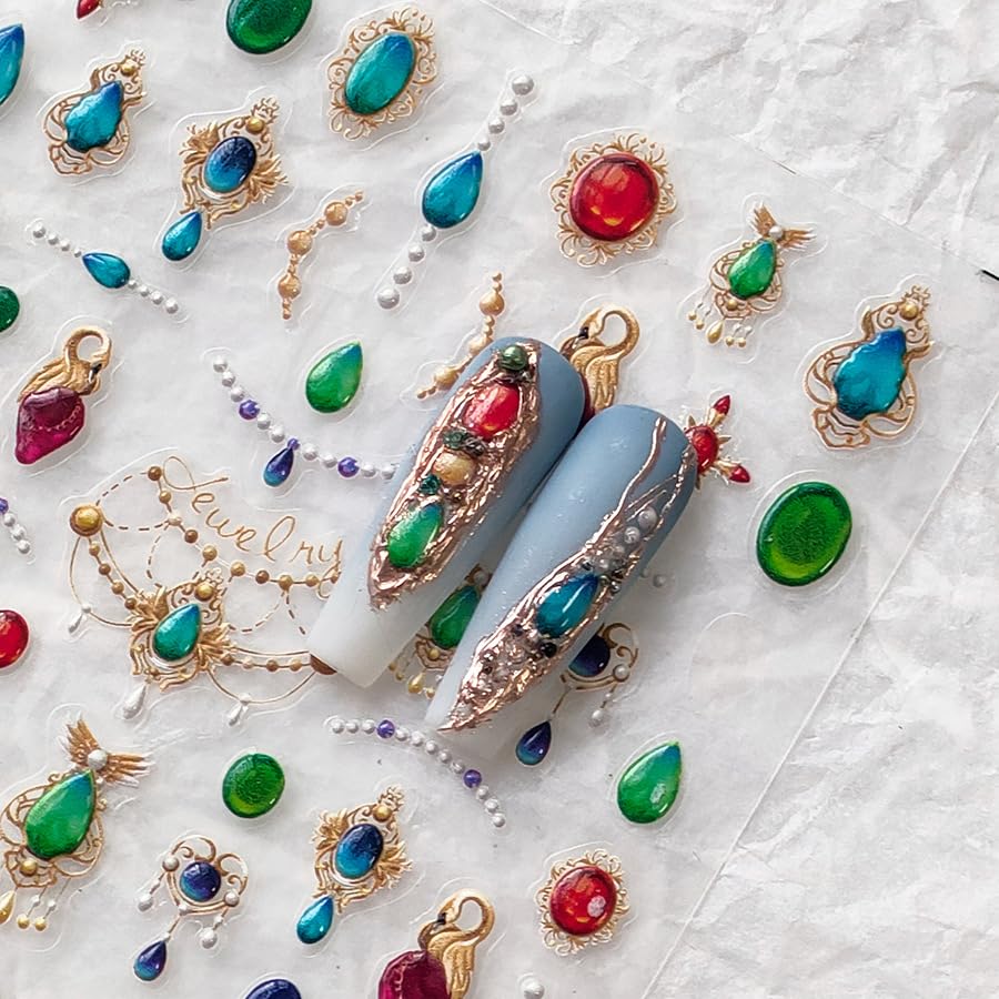 - Bohemia Nail Art Decals: 1 sheets of 5D embossing carving patterns nail stickers give you an advanced exquisite feeling. Colorful jewelry elements nail decals, suitable for decorations for your nails, adding a touch of magic to nail art design