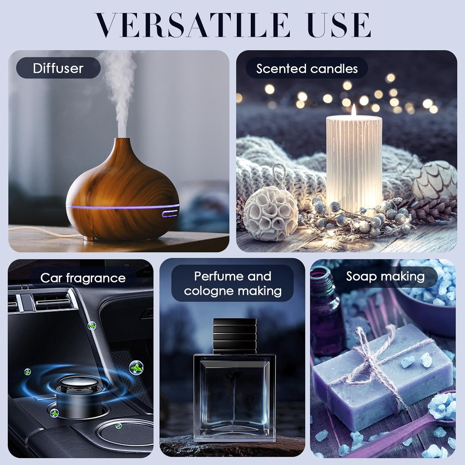 - Versatile Uses: Ideal for use in diffusers, candle making, and soap crafting, these oils offer a versatile way to incorporate high-end scents into daily routines or DIY projects, enhancing any environment with luxurious fragrances.