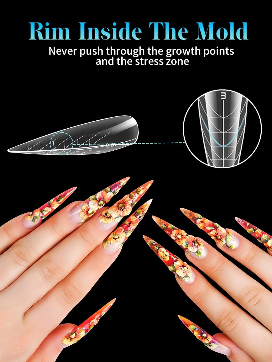 - 【Nail Form Mold with 15 Sizes】450pcs stiletto clear dual forms for poly nail gel offers 15 different nail sizes , and each size of long nail tips is separated by a small grid, a total of 15 grids, so they're easy and convenient to choose the suitable size to meet your nail's need.