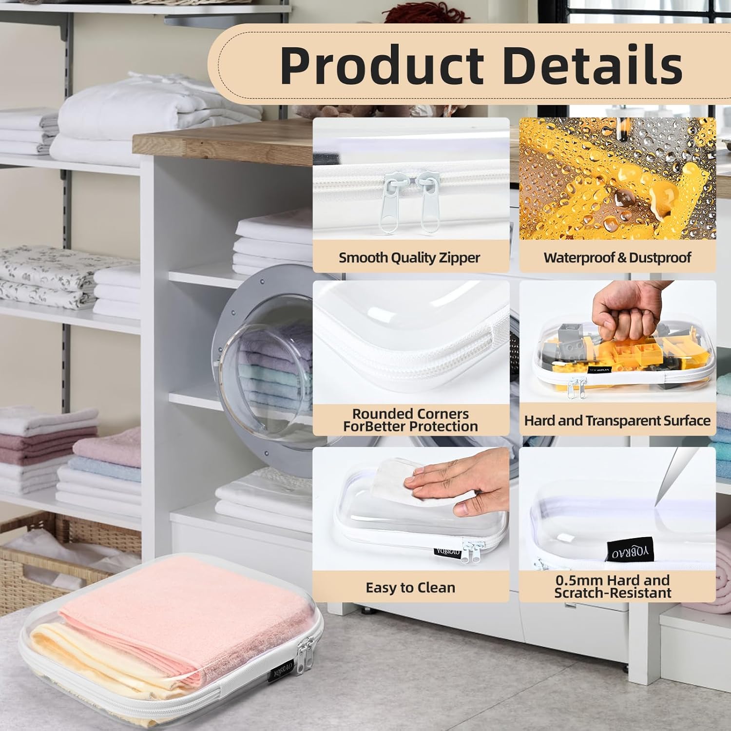 - CLEAR DESIGN: The transparent design hard shell zipper case allows you to quickly find what's inside without opening the box. Save time and avoid the annoyance of searching for items with these clear transparent storage boxes.