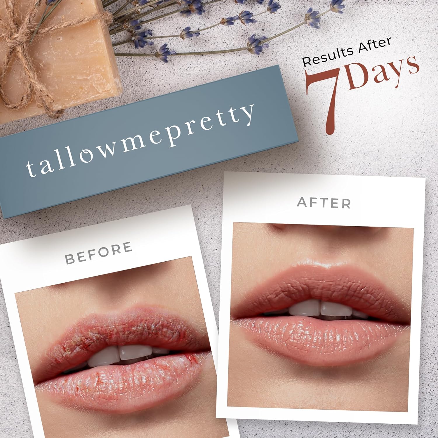 - Round-the-Clock Care for Your Lips: Experience superior lip care with Tallow Me Pretty’s lip balms; They glide on smoothly, soothing chapped lips while forming a protective barrier that helps prevent common issues like peeling, cracking and inflammation
