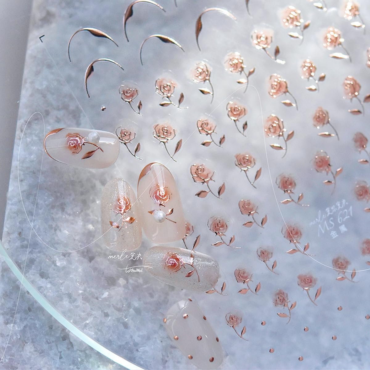 Rose Gold Flower Nail Stickers for Nail Art Rose Nail Decals Cute Stickers for Nails Designs Self Adhesive Nail Art Supplies & Decorations for Women Girls 1 Sheet