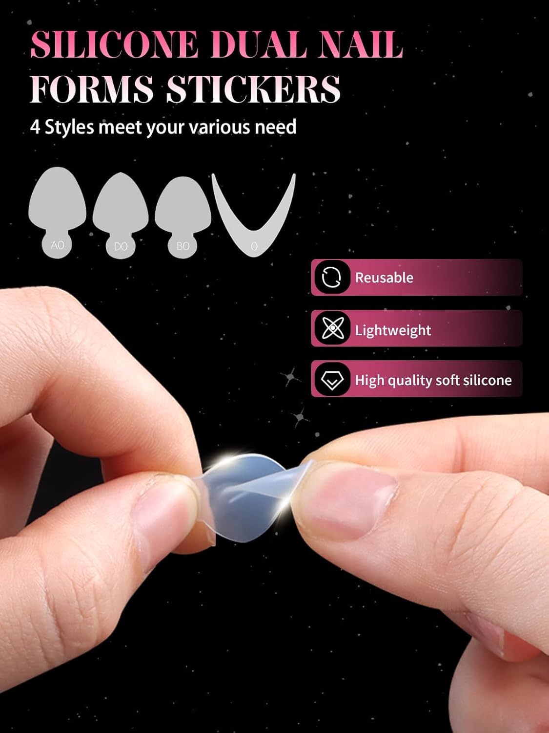 - 【Sturdy Dual Forms for Poly Gel】Nail forms for polygel reusable are made with high quality material, which is strong, tough, and reusable, providing you with a wonderful nail art experience that lasts.This artificial nails forms protective sleeve has a small handle on both sides, which is convenient for constructing gel nail extension nails, and will not stick to your hands, and can be easily removed after application