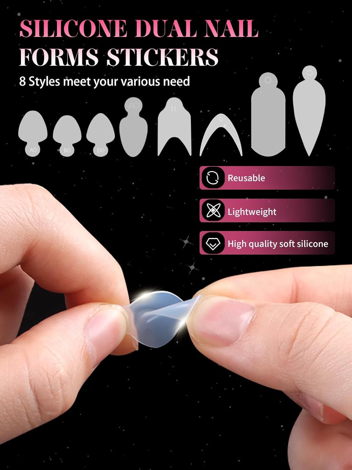 - 【12 Shapes with 12 Sizes】Both dual nail extension molds tips and French dual sticker silicone pads come in 8 style shapes and 12 sizes, each is engraved with numbers "0-11" for easy to recognize,which is convenient for you to design the nail length you want. And each size of long nail tips is separated by a small grid, a total of 12 grids, so they're easy and convenient to choose the suitable size to meet your nail's need