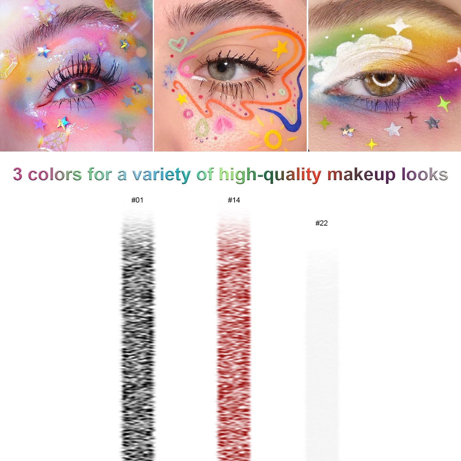 - 【Usage& Occasions】3 different Colorful Eye Liner, ideal for Party, Cosmetic Show, Live Show, Prom Night, Dance Party, and Wedding Makeup. With unique package, would be the perfect gift to your friends, bestie, families.