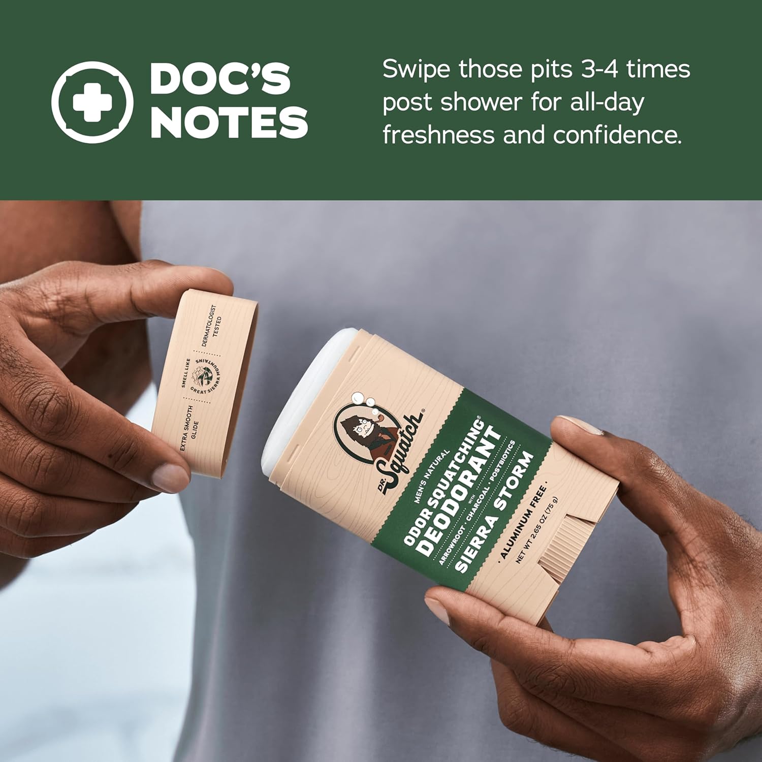 Dr. Squatch Natural Deodorant for Men - Sierra Storm – Smells Like Giant Mountain Sequoias - Odor-Squatching Men's Deodorant Aluminum Free (2.65 oz, 3 Pack)