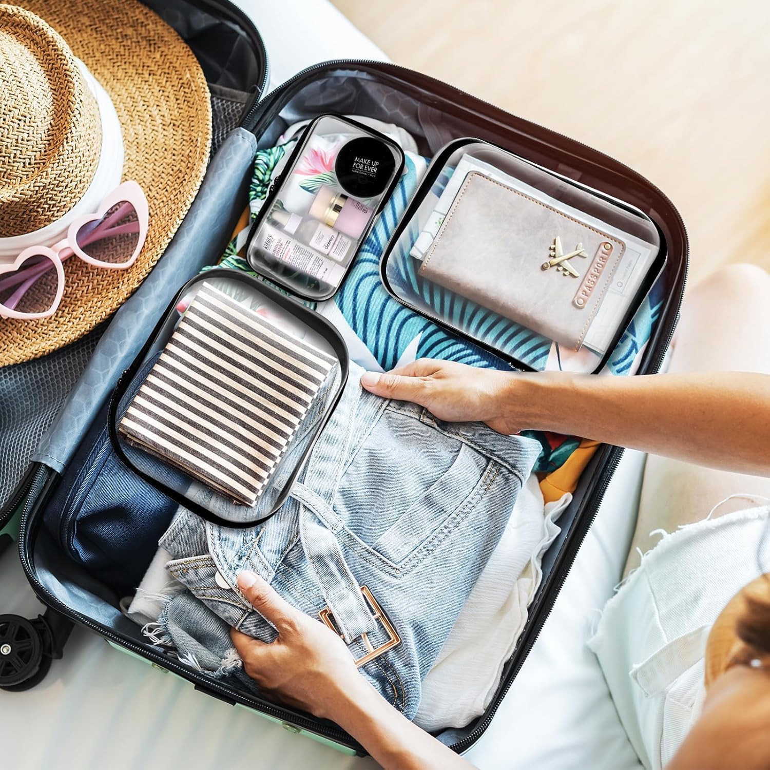 3PCS Clear Zipper Cases, Portable Clear Organizer Pouches for Travel, Double Zippered Hard Shell Plastic Case, Cosmetic Bag for Make Up Tools, Toiletries, Toy Storage (Black, 1 Pack)