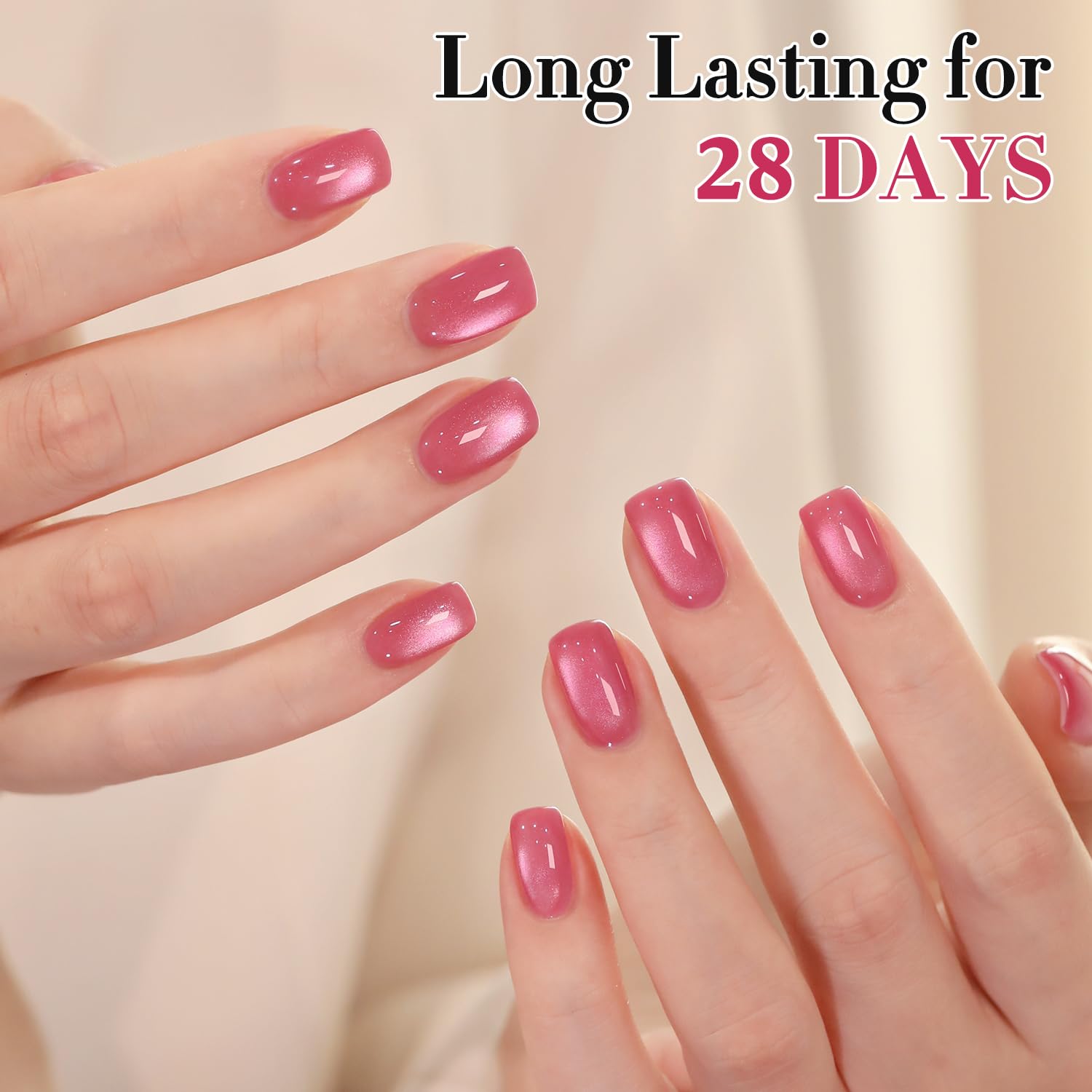 - Cat Eye Gel Nail Polish : Double Rhythm cat eye gel nail polish kit includes 1 color 15ml / 0.5 fl.oz gel nail polish. The cat eye gel can be combined with different bacse colors arbitrarily, you can get different colors nail art.You can use different base coat to creat different sytles.