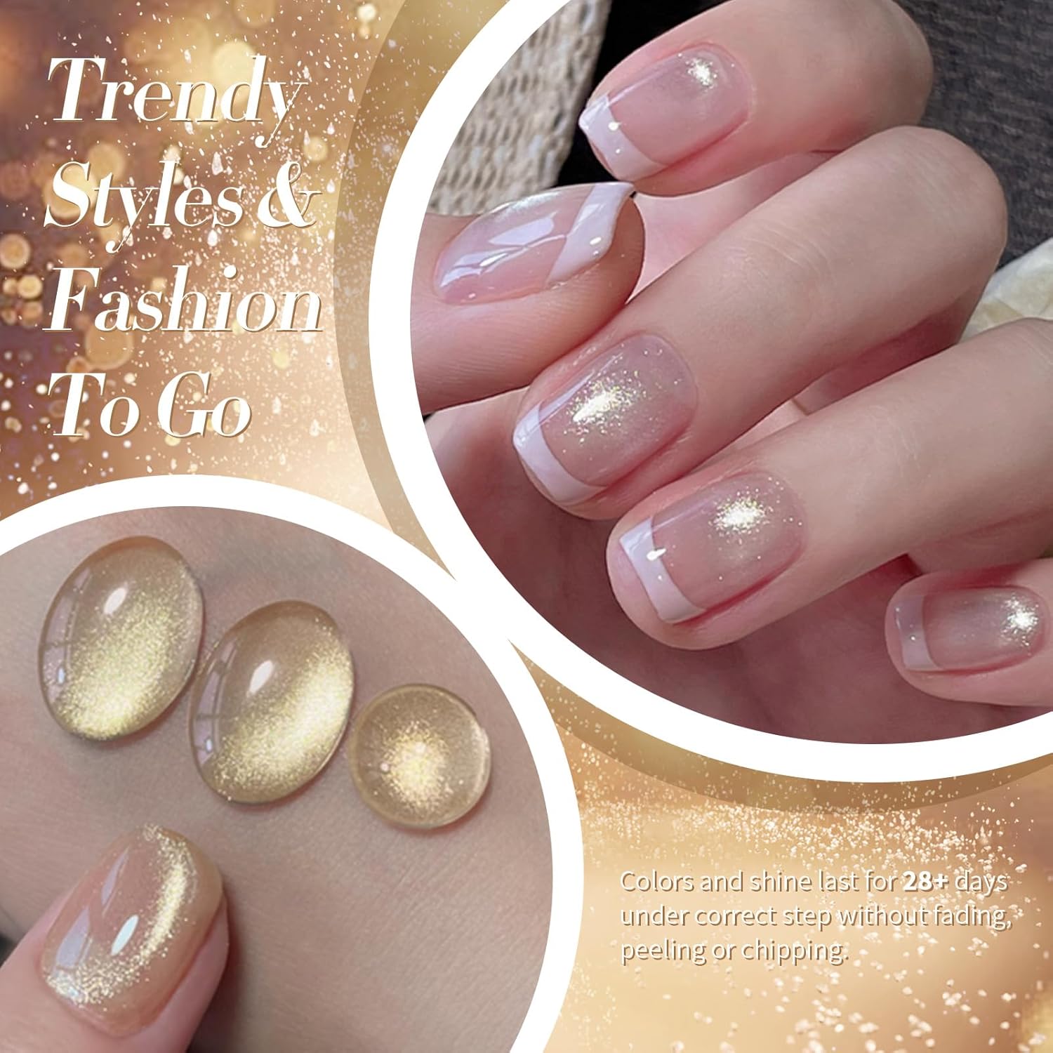 BORN PRETTY Cat Magnetic Eye Gel Nail Polish, Champagne Glitter Cat Magnetic Gel Nail Polish Magnetic Nail Polish for Nail Art Manicure Salon DIY at Home 15ML