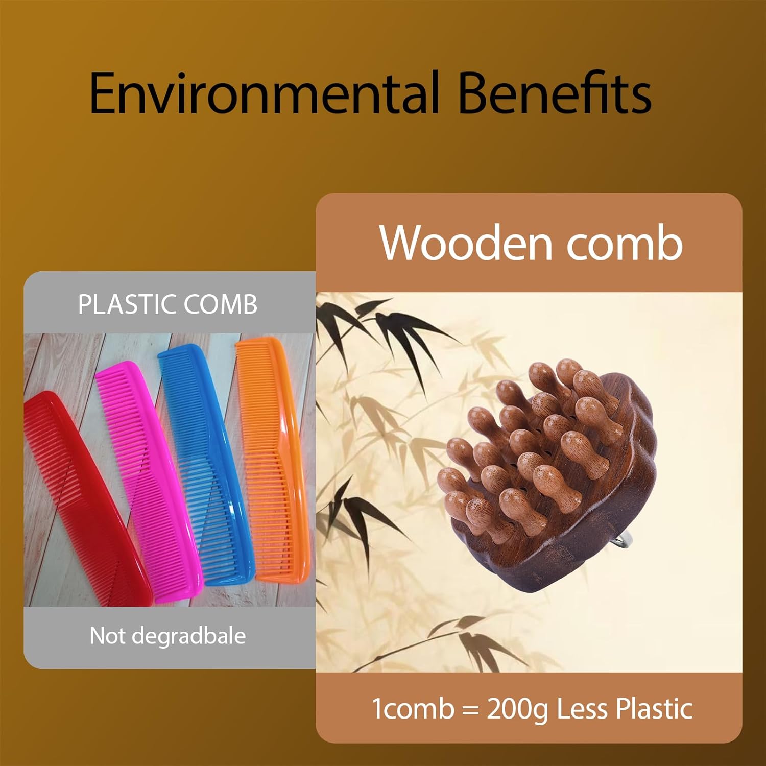 Wooden Scalp Massager for Hair Growth - Wooden Hair Brush & Body Massage Tool with Wide Teeth for Detangling, Stress Relief & Improved Circulation
