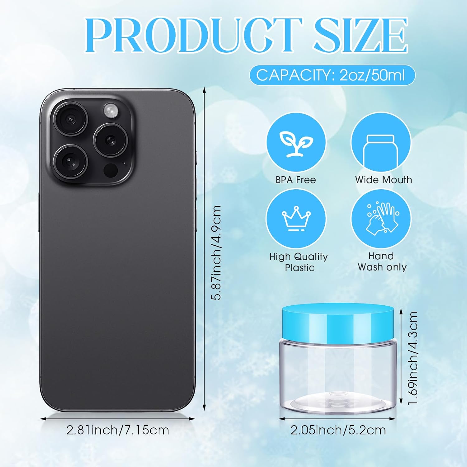 - Warm Notes: the body of the plastic cosmetic jars with lids is made of PET plastic, and the temperature of the stored items cannot exceed 65 degrees Celsius/ 149 degrees Fahrenheit, otherwise it will be deformed; Do not wash the bottle in the dishwasher, and do not use the microwave; Wash with cold or warm water and dry at room temperature