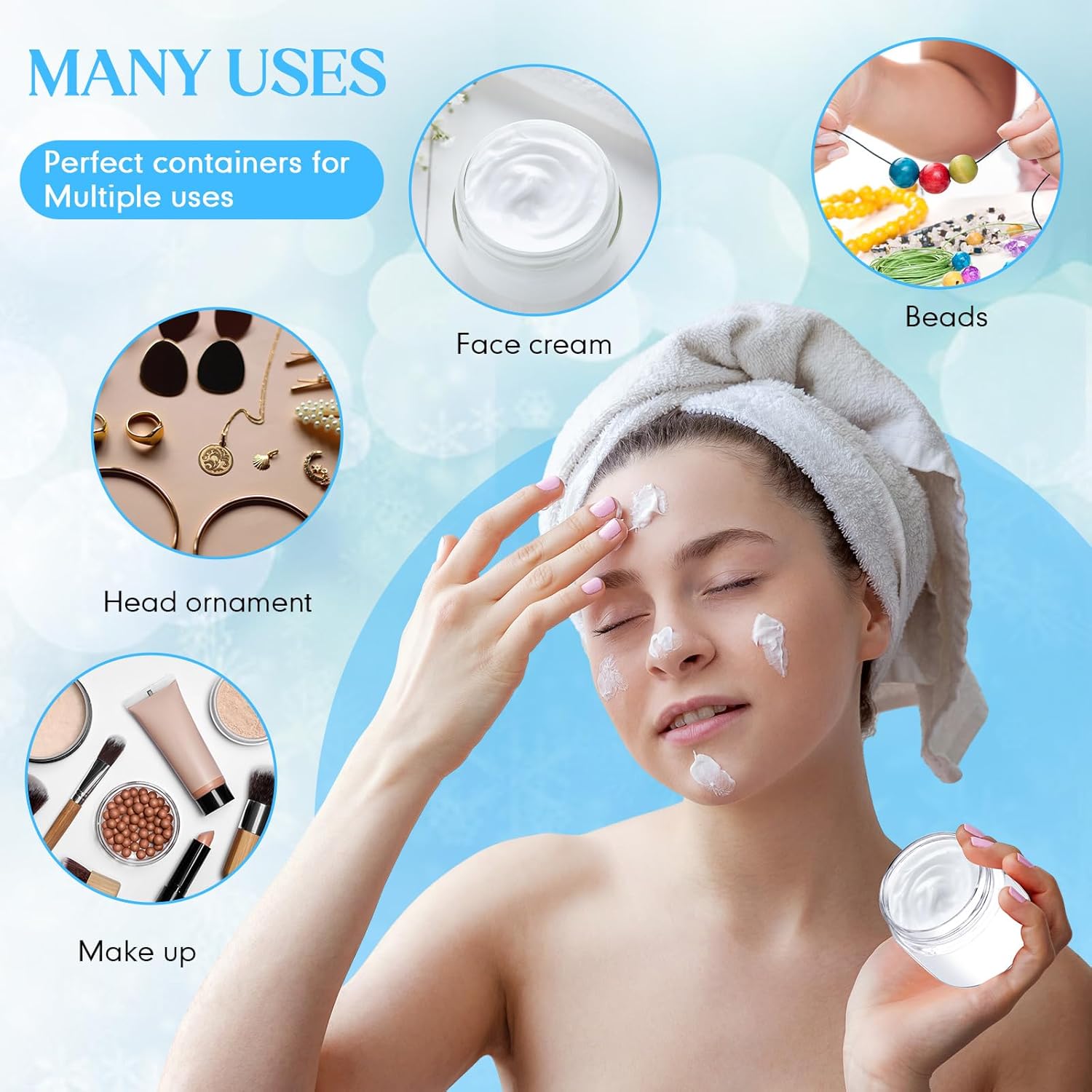 - Multifunctional Containers: you can use these plastic jar containers with lids to store your personal beauty products for travel, ideal to dispense; You can also use it to store homemade sugar scrub cream, body lotions, bath butter soap gifts, body butters and hair moisturizers, small and easily lost jewelry, small crafts like beads, seasonings, acrylic paints, flower seeds, rhinestones etc., which will keep your things organized and make your life more convenient