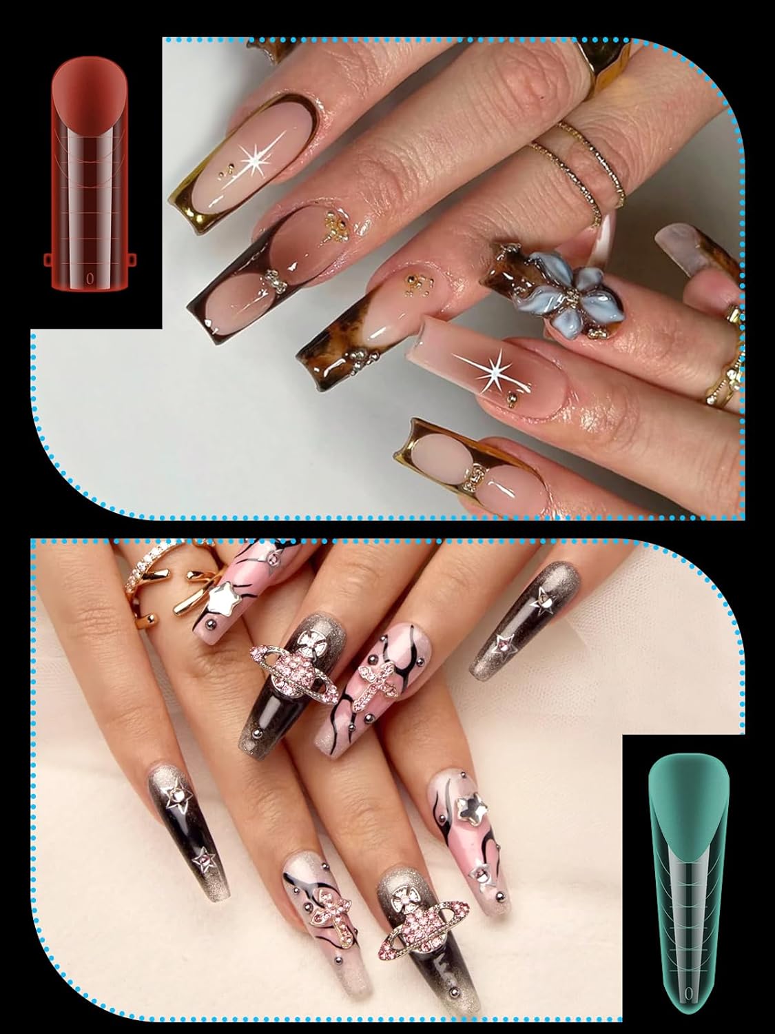 - 【Sturdy No C Curve Gel Nail Forms】Reusable extra long nail molds are made with high quality material, which is strong, tough, and reusable, providing you with a different lengths nail art experience that lasts.This artificial nails forms protective sleeve has a small handle on both sides, which is convenient for constructing gel nail extension nails, and will not stick to your hands, and can be easily removed after application.