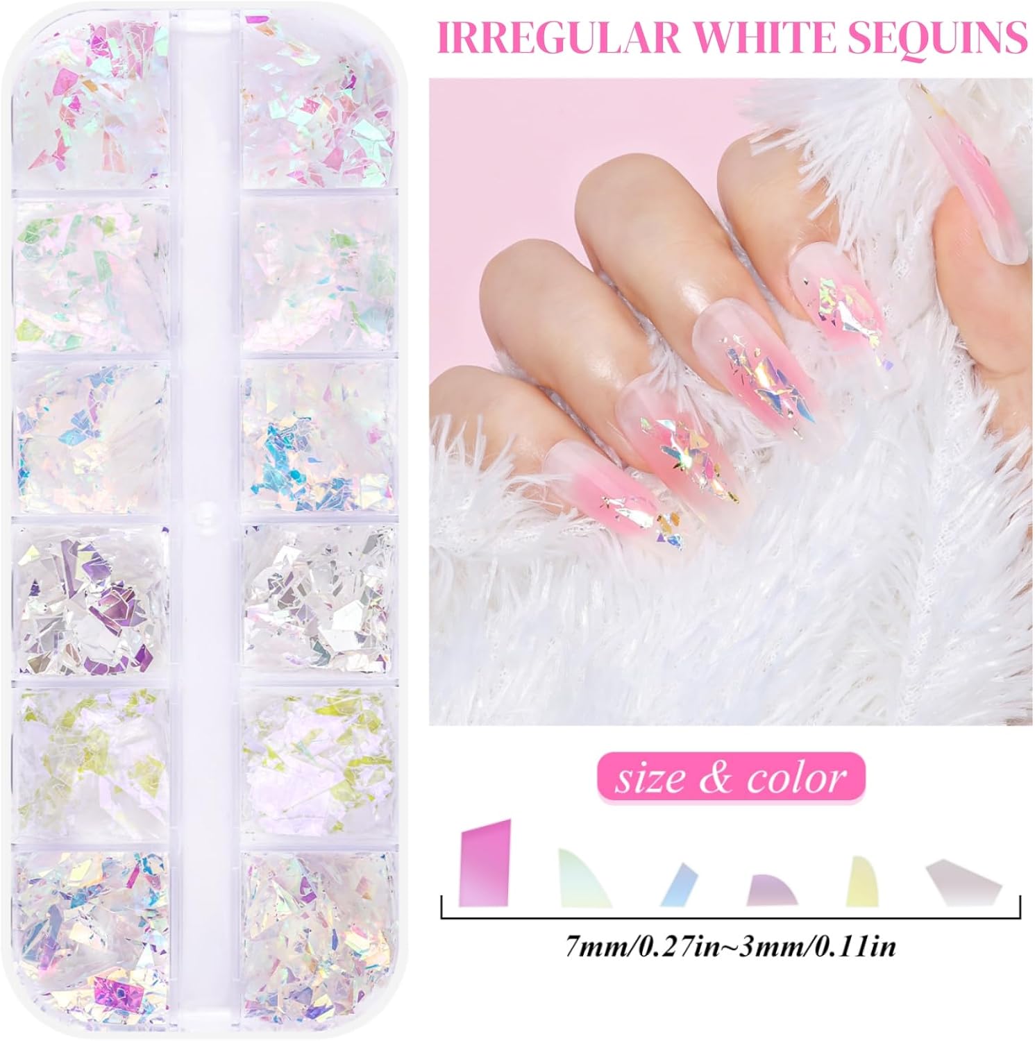 - Premium Laser Glitter Technology: These sequins use special laser-reflective coating, creating a 3D sparkling effect from every angle. Perfect for high-shine, long-lasting nail designs that catch the eye! The 3D holographic effect shifts colors under different lights, adding dazzling sparkle to your nails.