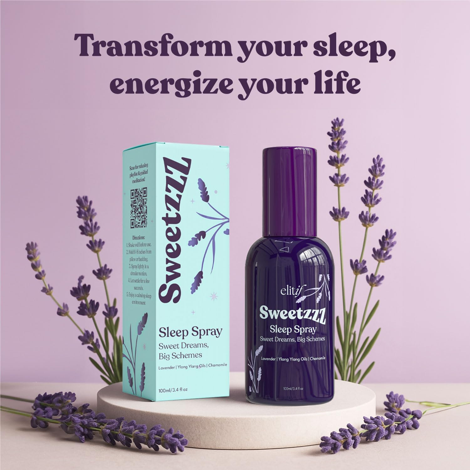 Lavender Pillow Spray for Sleeping – Aromatherapy Sleep Mist & Natural Bedtime Linen & Room Spray – Vegan, Non-Toxic, Travel-Friendly – Sweetzzz by Elitif