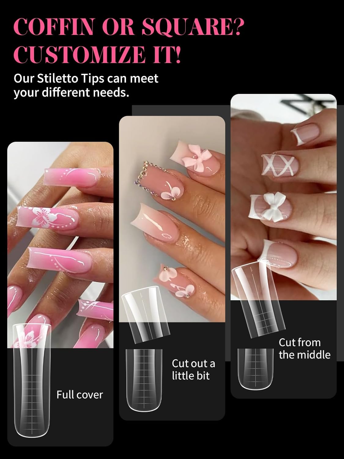 - 【Sturdy No C Curve Gel Nail Forms】Reusable extra long nail molds are made with high quality material, which is strong, tough, and reusable, providing you with a different lengths nail art experience that lasts.This artificial nails forms protective sleeve has a small handle on both sides, which is convenient for constructing gel nail extension nails, and will not stick to your hands, and can be easily removed after application.