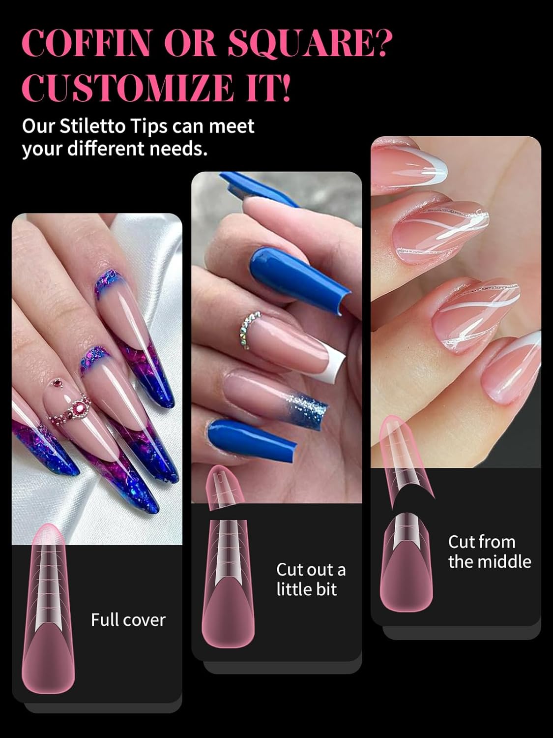 - 【Sturdy No C Curve Gel Nail Forms】Reusable extra long nail molds are made with high quality material, which is strong, tough, and reusable, providing you with a different lengths nail art experience that lasts.This artificial nails forms protective sleeve has a small handle on both sides, which is convenient for constructing gel nail extension nails, and will not stick to your hands, and can be easily removed after application.