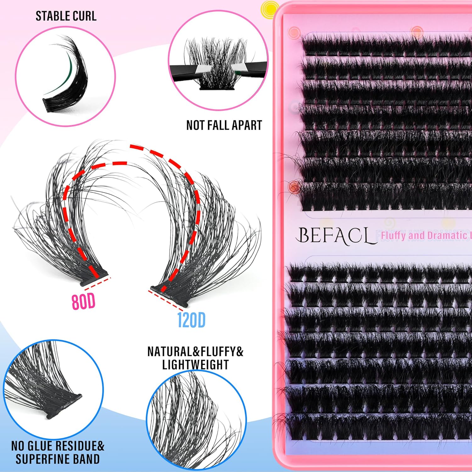 Lash Clusters Fluffy Individual Lashes 80D+120D Thick Eyelash Clusters D Curly Wispy Eyelash Extensions 10-22mm Eyelashes Cluster 252pcs False Eyelashes DIY SinuVelv Lash Extension by Befacl