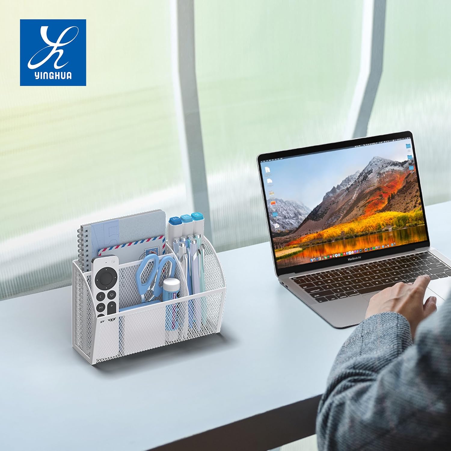 - Strong Magnetic Grip for Multi-Surface Use – This White 3-compartment metal mesh desk organizer securely attaches to whiteboards, refrigerators, lockers, and other magnetic surfaces with its powerful built-in magnets. The sturdy hold keeps your pens, pencils, and small essentials in place while freeing up desk space. Perfect as a pen holder for desk, office organizer, or classroom pencil holder