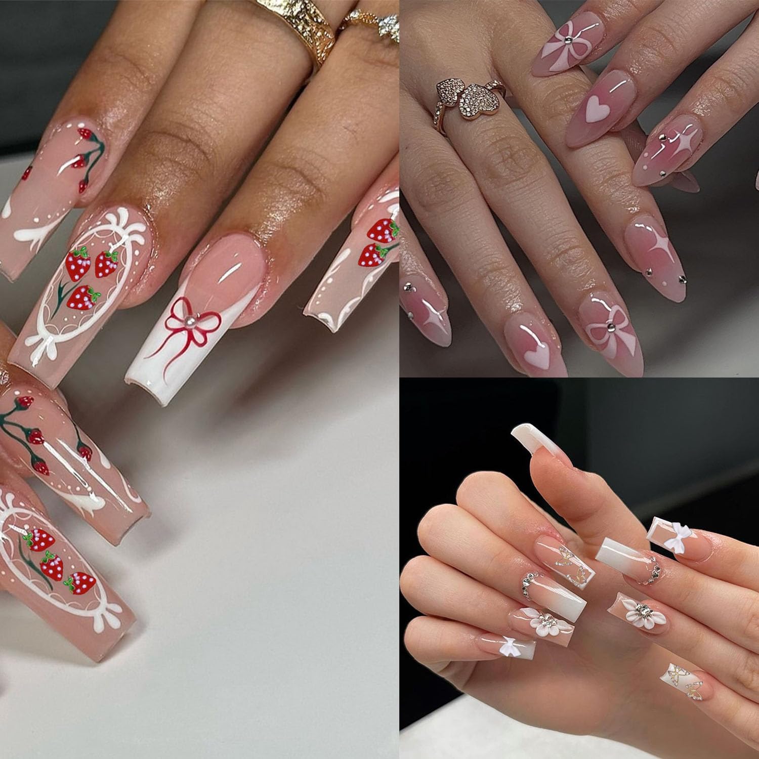 - Package Content: It comes with assorted nail charms, including colorful bows, flowers, Strawberries, cherries and a variety of half pearl and flat back gems rhinestone nail art jewelry of different sizes, with 1 piece of tweezers and 1 piece of picking pen, convenient and practical professional manicure supplies